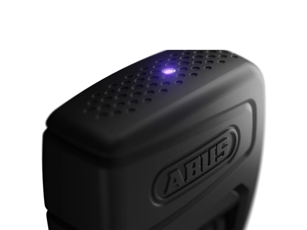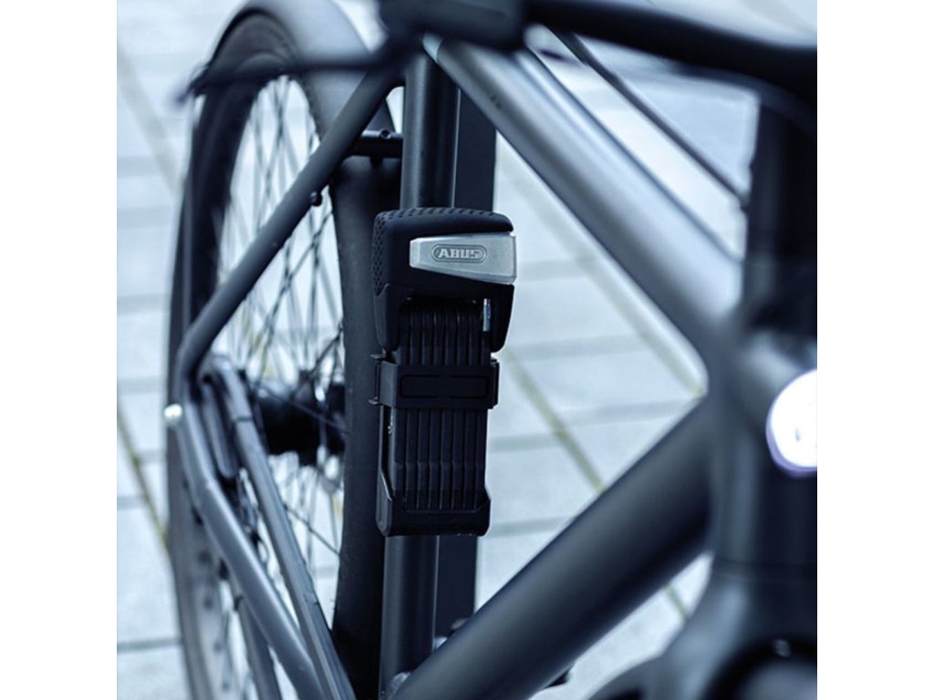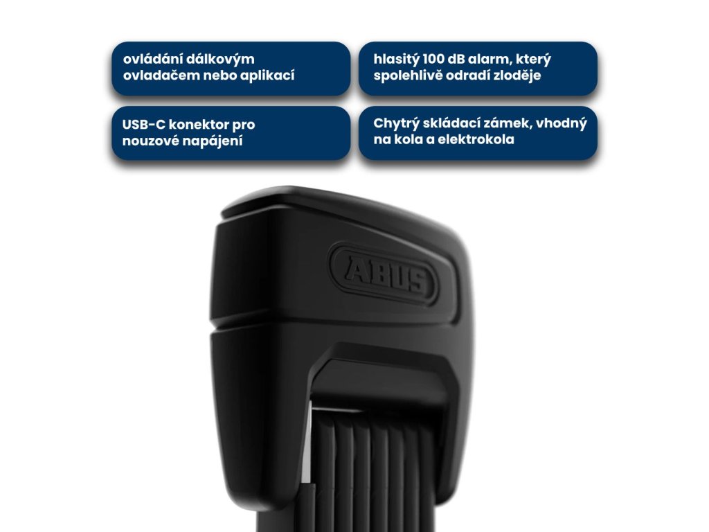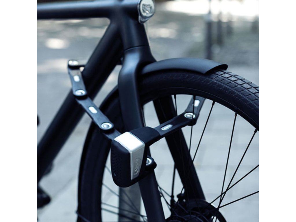 Inteligentna składana blokada, odpowiednia do rowerów i rowerów elektrycznych, Bluetooth, aplikacja mobilna ABUS One, alarm 100 dB, czarny design.