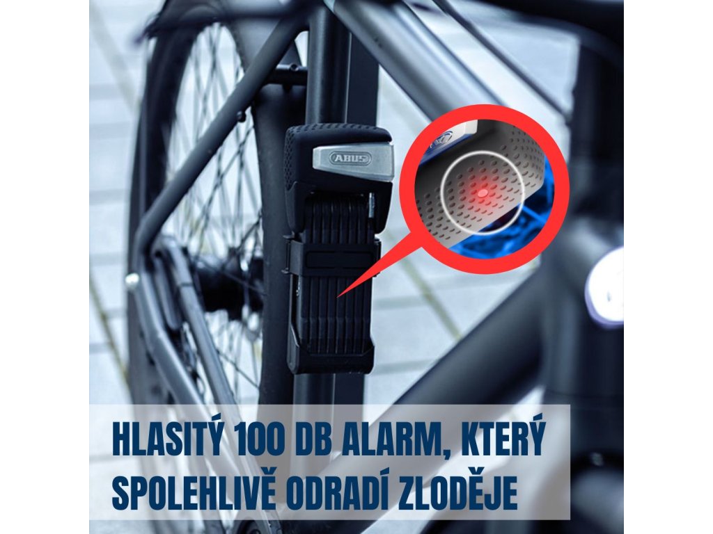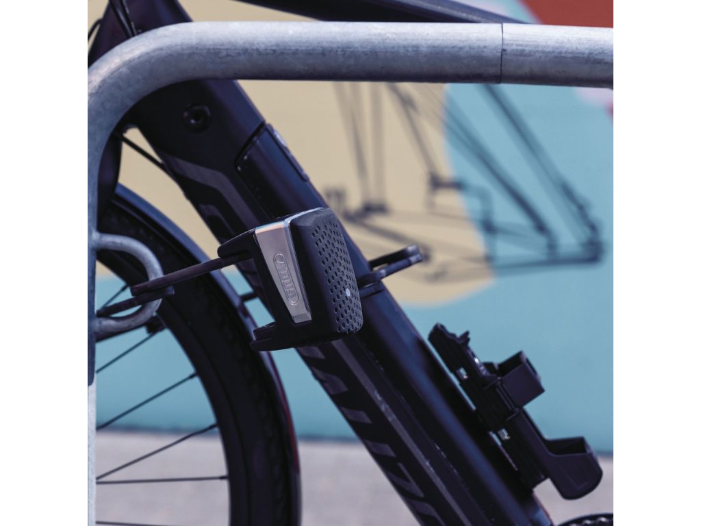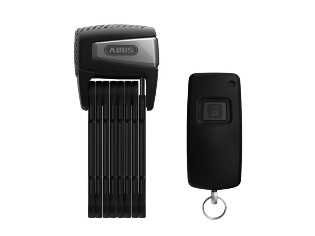 Inteligentna składana blokada, odpowiednia do rowerów i rowerów elektrycznych, Bluetooth, aplikacja mobilna ABUS One, alarm 100 dB, czarny design.