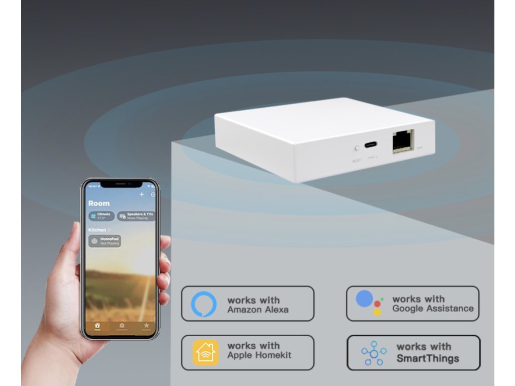 Dodatkowo elegancki biały design bramy idealnie wpasowuje się w każde wnętrze, a zasilanie z sieci zapewnia ciągłą pracę bez konieczności wymiany baterii. Kompatybilność z asystentami głosowymi, takimi jak Google Home i Amazon Alexa, daje możliwość sterowania głosowego i automatyzacji, co ułatwi Ci codzienne czynności.