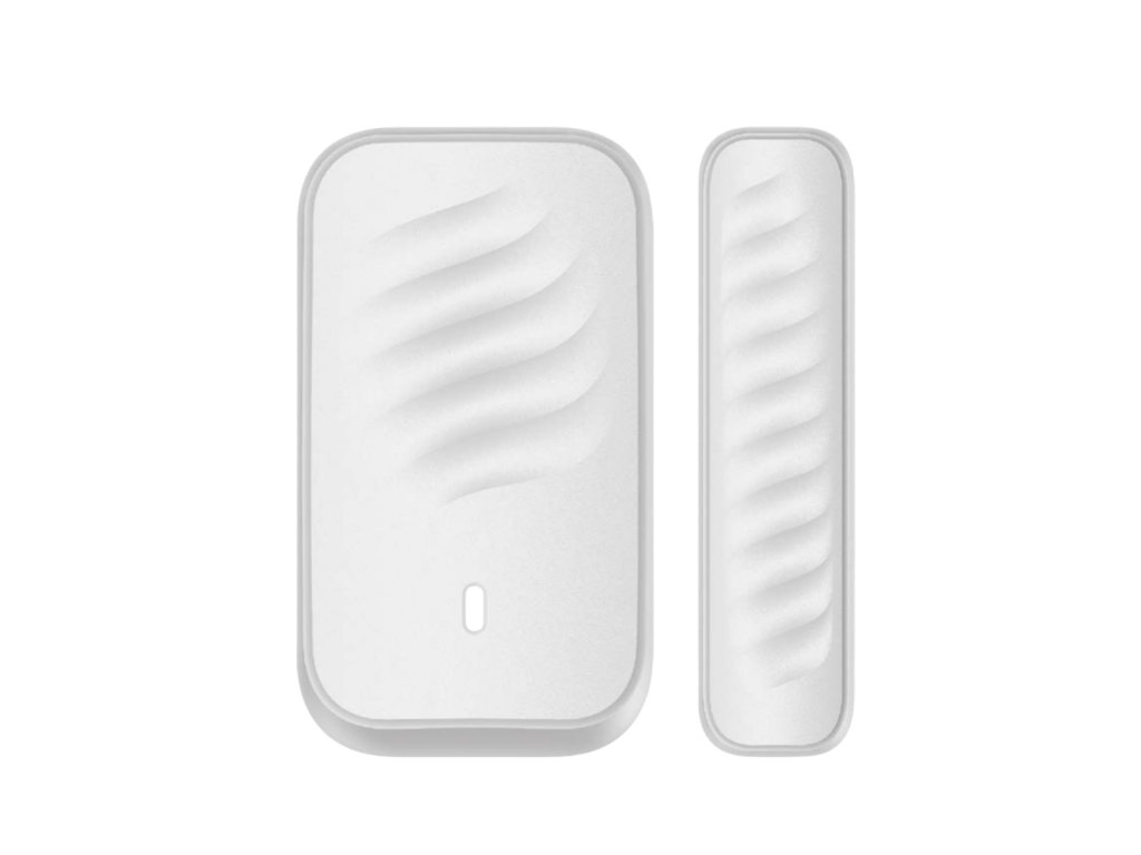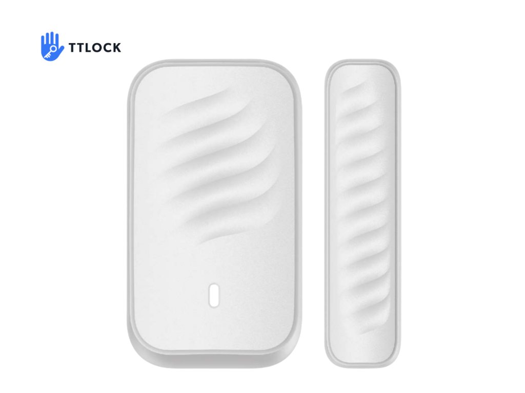Inteligentny czujnik do okien i drzwi, aplikacja mobilna TTLock, kompatybilna z asystentami głosowymi Google Assistant i Amazon Alexa, zasilana bateryjnie, w kolorze białym.