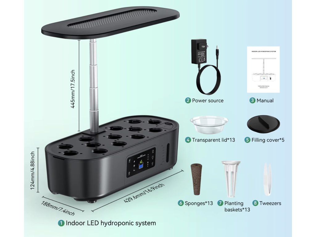 Ten model dodatkowo posiada wbudowany wyświetlacz LED, który zapewnia czytelne informacje o stanie nawadniania i warunkach świetlnych. Dzięki temu masz wszystko pod kontrolą i zapewnisz roślinom idealne środowisko do wzrostu.