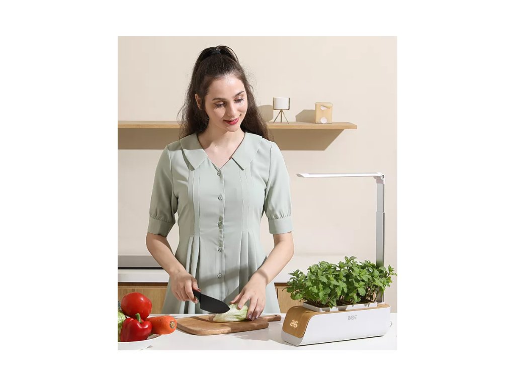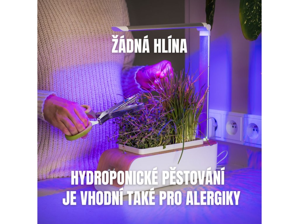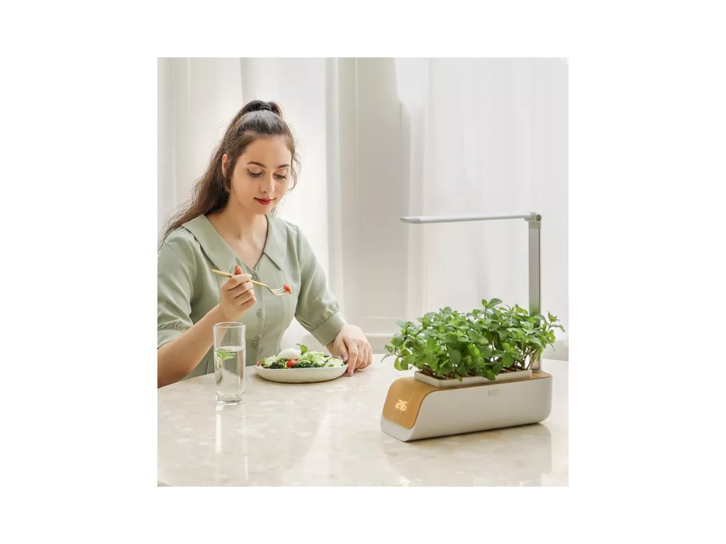 Ta inteligentna doniczka oparta jest na uprawie hydroponicznej. Jej zalety to: