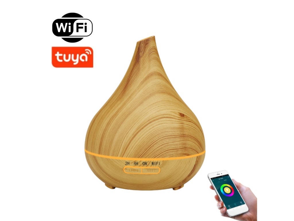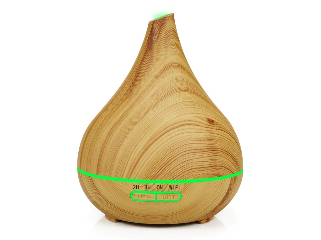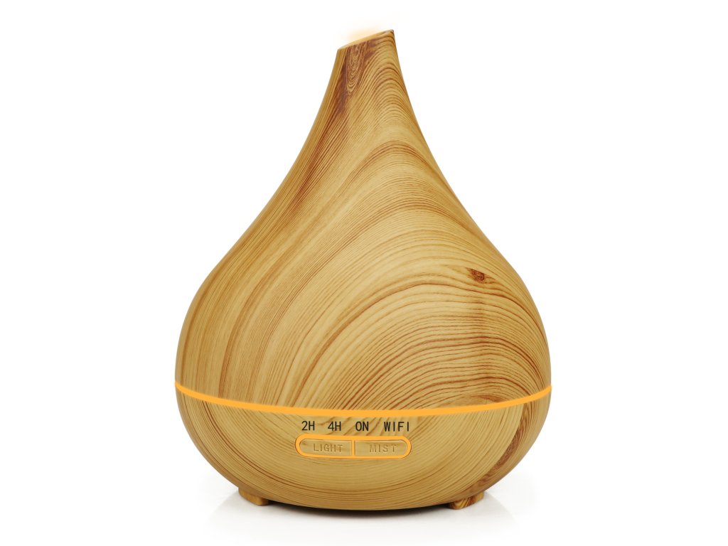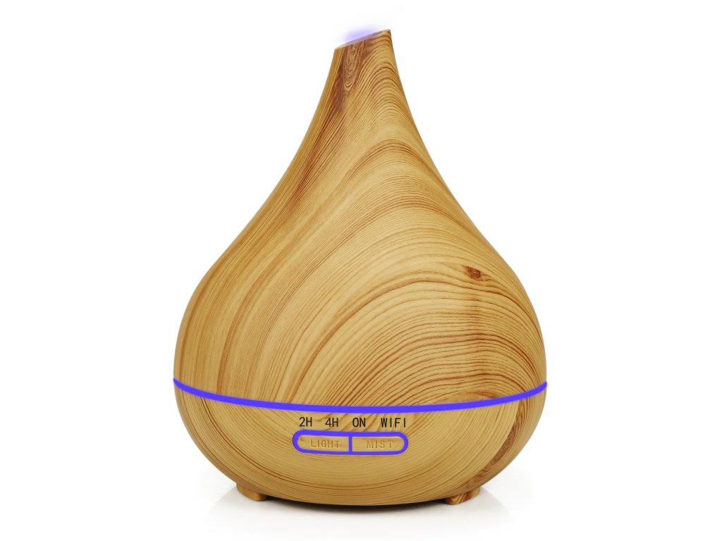 Dyfuzor zapachowy sterowany pilotem i przyciskami, pojemność pojemnika 400 ml, 7 kolorów podświetlenia, czas działania 12 godzin, podświetlenie, kolor jasnobrązowego drewna
