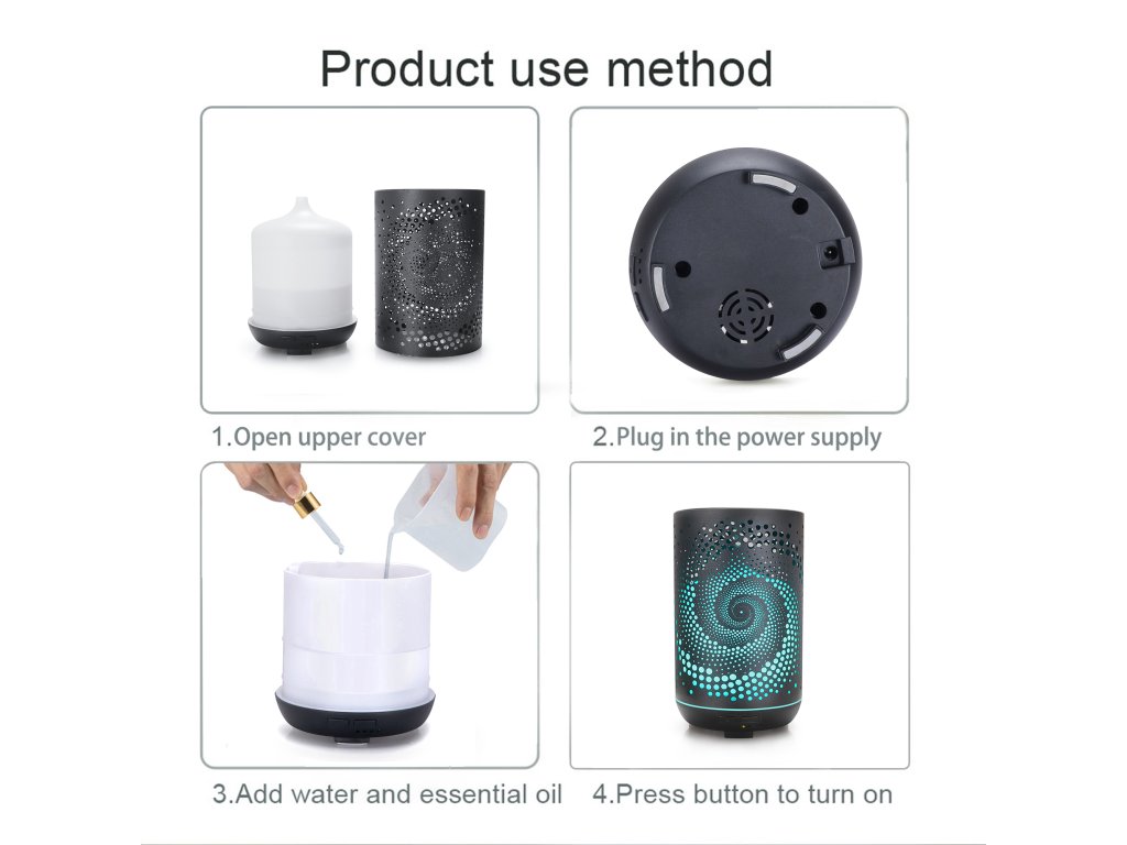 Dyfuzor wykorzystuje technologię dyfuzji ultradźwiękowej do rozpylania olejków eterycznych w pomieszczeniu. Inteligentny dyfuzor działa poprzez wytwarzanie ultradźwięków o częstotliwości 360°, które natychmiast rozpylają cząsteczki wody i olejku w powietrzu. Rezultatem jest znacznie skuteczniejsza alternatywa dla starszych dyfuzorów ciepła, które mogą uszkodzić olejki eteryczne pod wpływem ciepła podczas procesu dyfuzji.