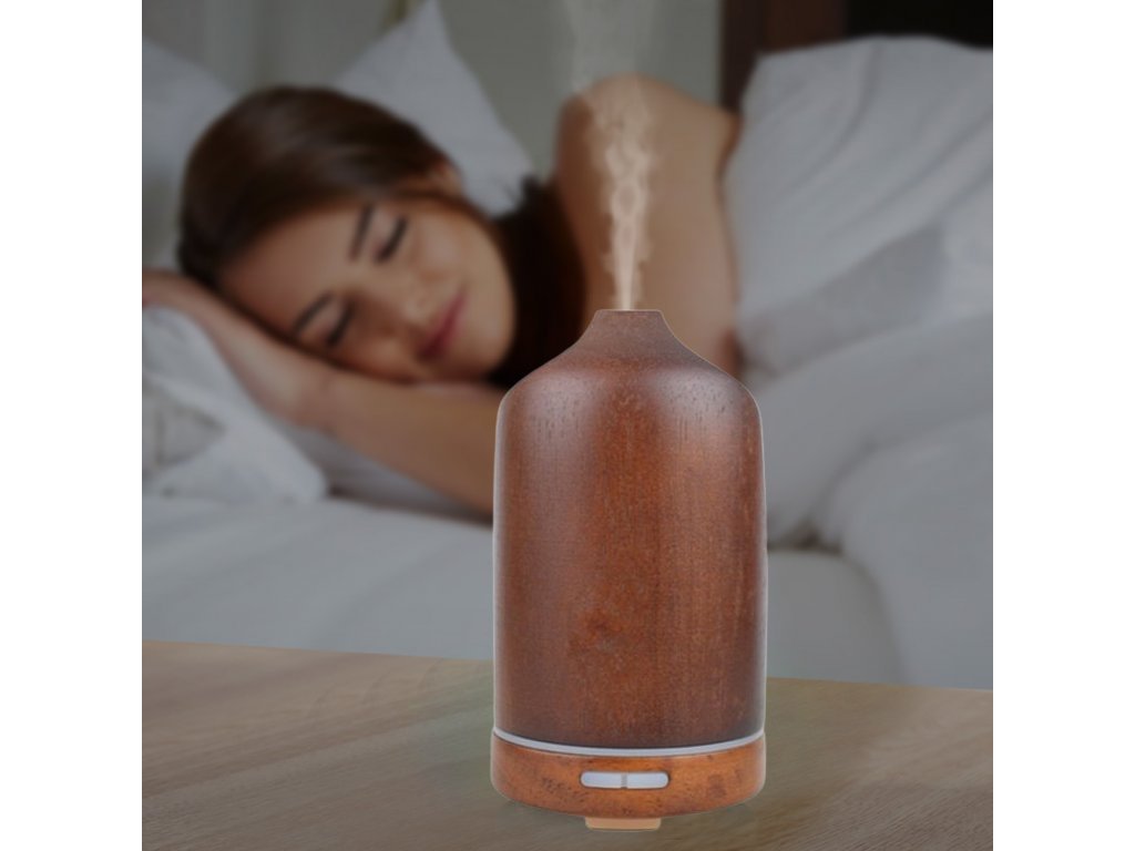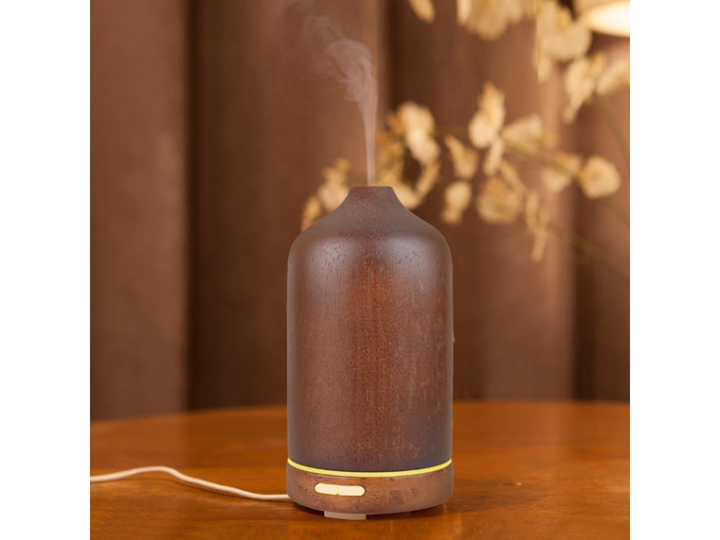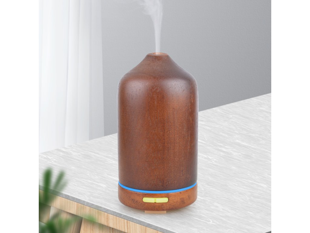 Dyfuzor zapachowy, pojemność pojemnika 100 ml, 7 kolorów podświetlenia, czas działania 4 godziny, podświetlenie i włączanie/wyłączanie, materiał: naturalne drewno bambusowe, kolor: jasne lub ciemne drewno