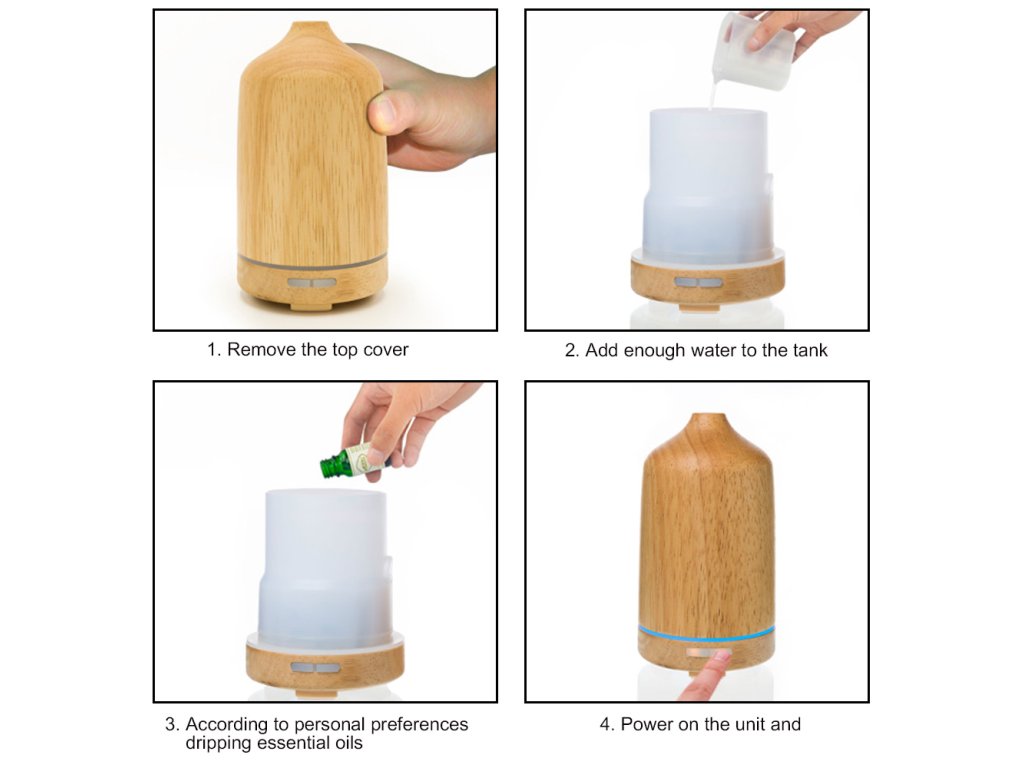Dyfuzor wykorzystuje technologię dyfuzji ultradźwiękowej do rozpylania olejków eterycznych w pomieszczeniu. Inteligentny dyfuzor działa poprzez wytwarzanie ultradźwięków o częstotliwości 360°, które natychmiast rozpylają cząsteczki wody i olejku w powietrzu. Rezultatem jest znacznie zdrowsza alternatywa niż starsze modele dyfuzorów ciepła, które mogą uszkadzać olejki eteryczne podczas procesu dyfuzji ciepła. Jest praktyczny i wyłącza się automatycznie, gdy zbiornik jest pusty.