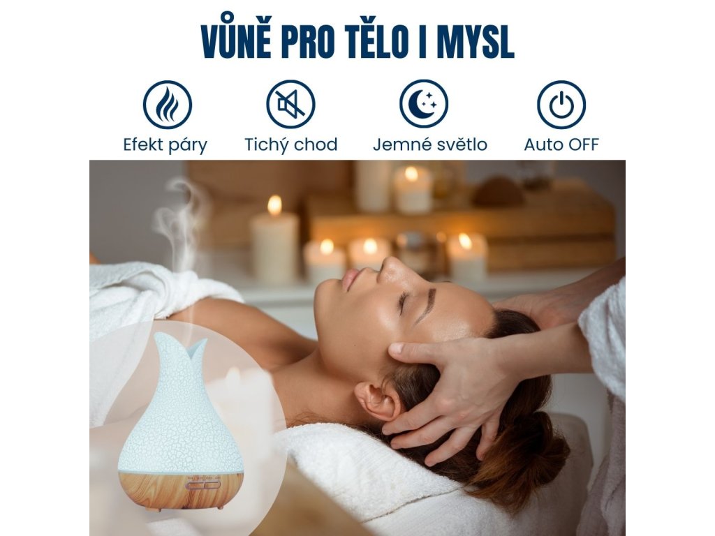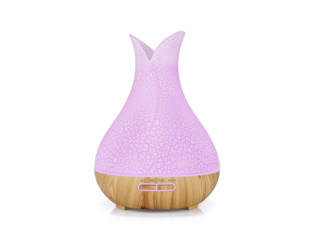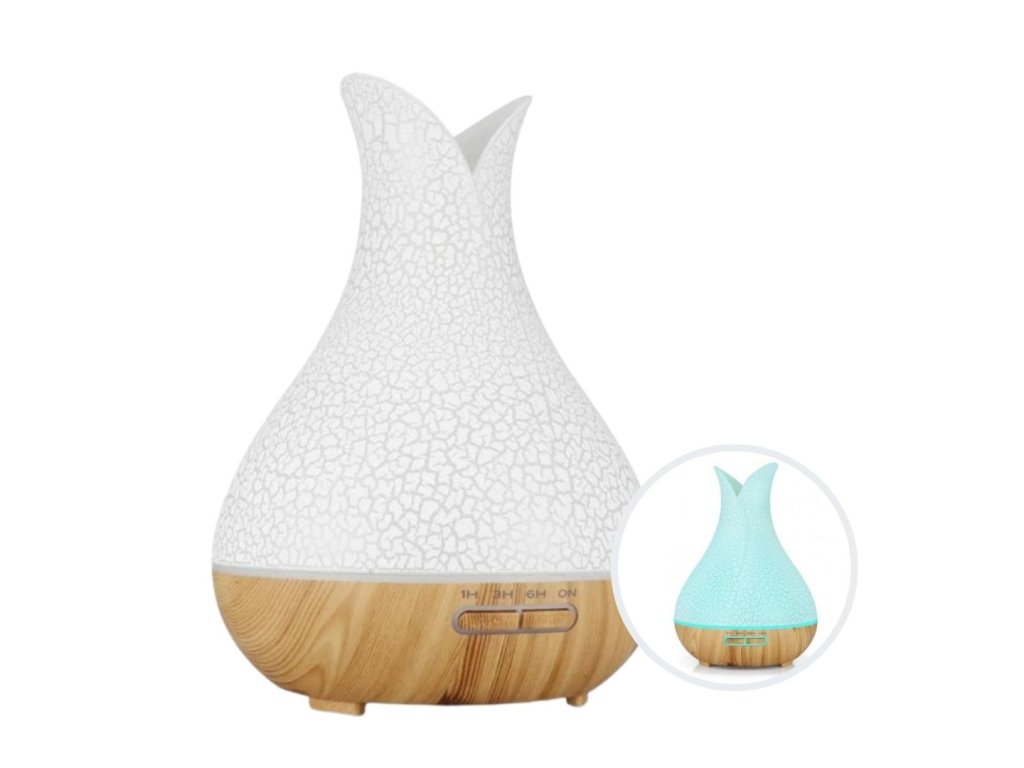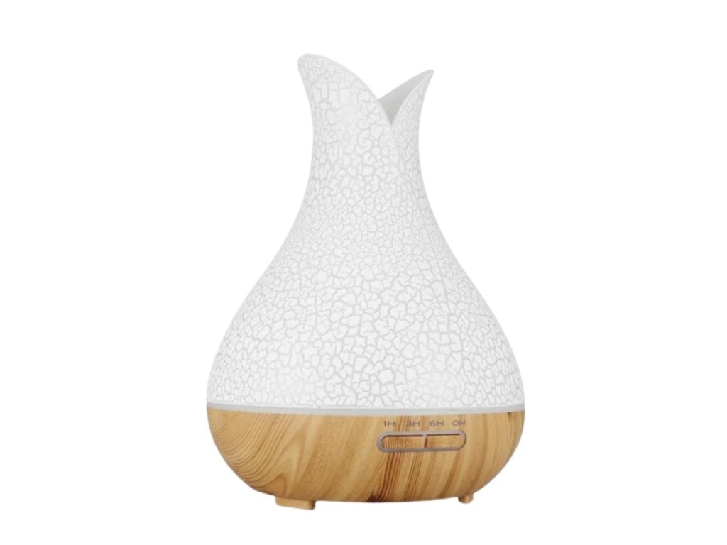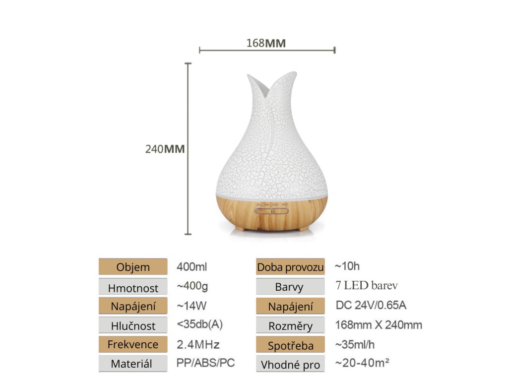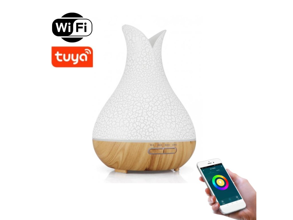 Pojemność pojemnika 400 ml, 7 kolorów podświetlenia, czas pracy 12 godzin, WiFi, podświetlenie i włączanie/wyłączanie, kolor biały i jasnobrązowe drewno