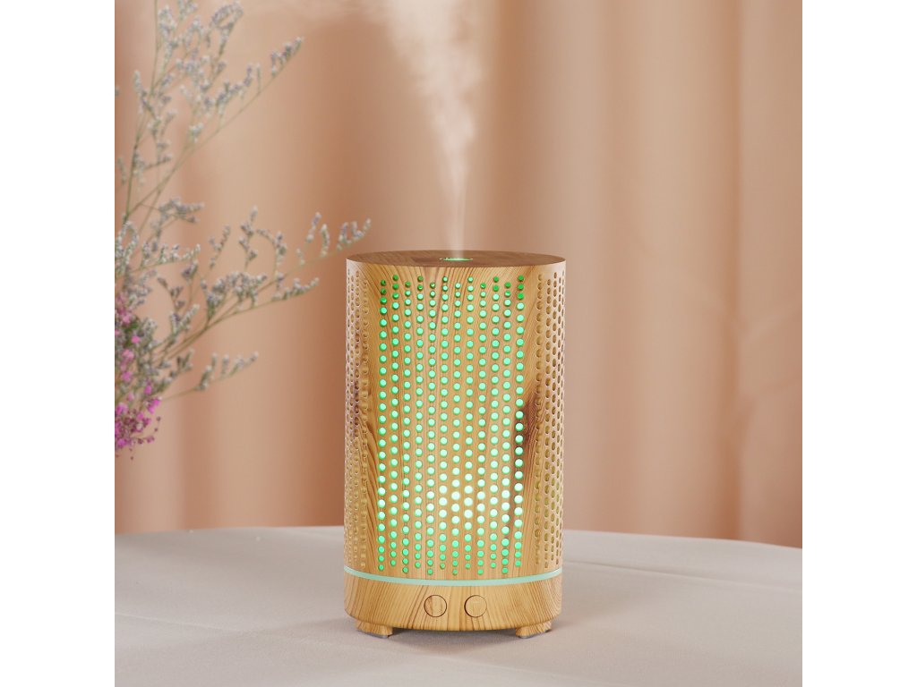Dyfuzor wykorzystuje technologię dyfuzji ultradźwiękowej do rozpylania w pomieszczeniu olejków eterycznych. Inteligentny dyfuzor działa poprzez wytwarzanie ultradźwięków o częstotliwości 360°, które natychmiast rozpylają cząsteczki wody i olejku w powietrzu. W rezultacie jest to znacznie zdrowsza alternatywa niż starsze modele dyfuzorów ciepła, które mogą uszkadzać olejki eteryczne podczas procesu rozprowadzania ciepła. Jest praktyczny i wyłącza się automatycznie, gdy zbiornik jest pusty.