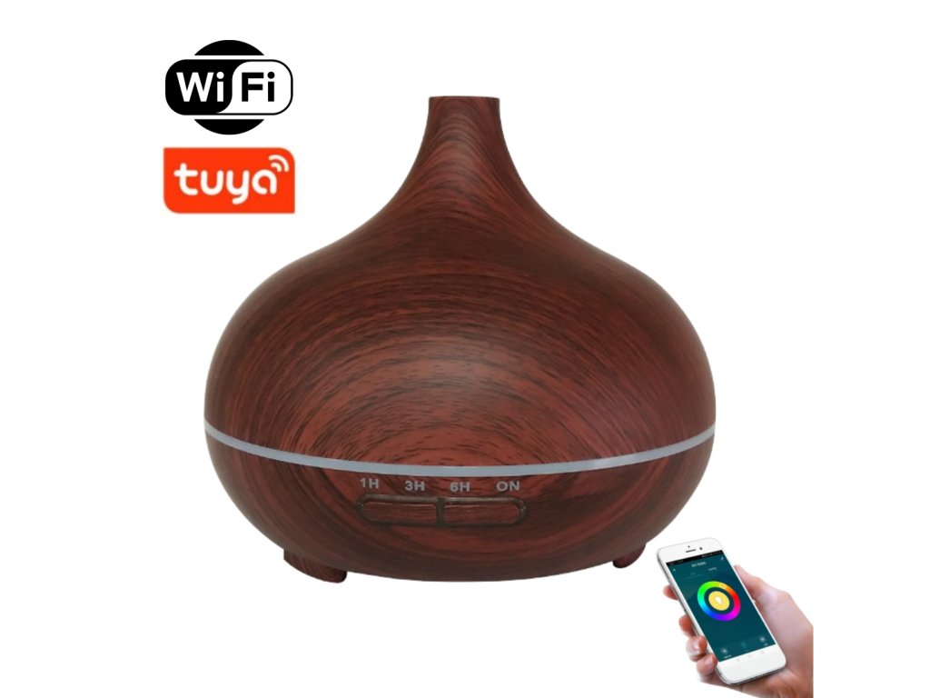Inteligentny dyfuzor zapachowy, pojemność pojemnika 300 ml, 7 kolorów podświetlenia, czas działania do 15 godzin, WiFi, podświetlenie i włączanie/wyłączanie, kolor czerwono-brązowy