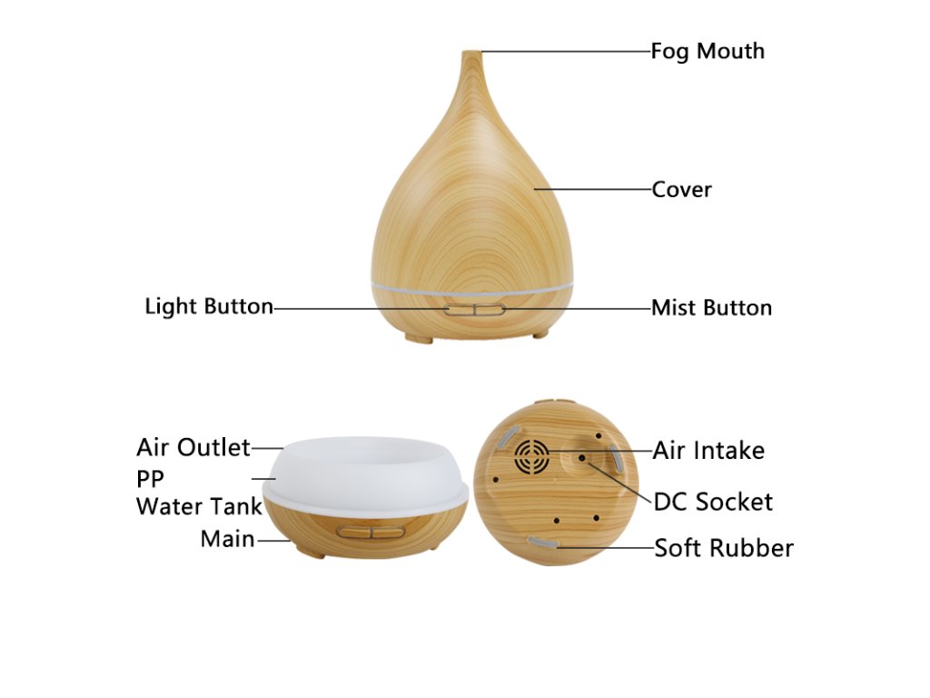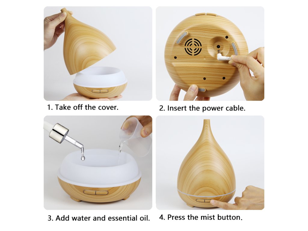 Dyfuzor wykorzystuje technologię dyfuzji ultradźwiękowej do rozpylania w pomieszczeniu olejków eterycznych. Inteligentny dyfuzor działa poprzez wytwarzanie ultradźwięków o częstotliwości 360°, które natychmiast rozpylają cząsteczki wody i olejku w powietrzu. W rezultacie jest to znacznie zdrowsza alternatywa niż starsze modele dyfuzorów ciepła, które mogą uszkadzać olejki eteryczne podczas procesu rozprowadzania ciepła. Jest praktyczny i wyłącza się automatycznie, gdy zbiornik jest pusty.