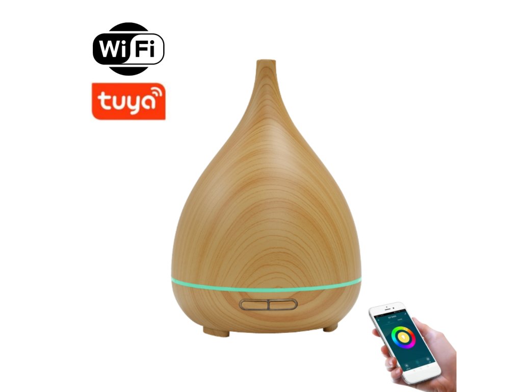 Inteligentny dyfuzor zapachowy, pojemność pojemnika 300 ml, 7 kolorów podświetlenia, czas działania 15 godzin, WiFi, podświetlenie i włączanie/wyłączanie, kolor jasnobrązowego drewna