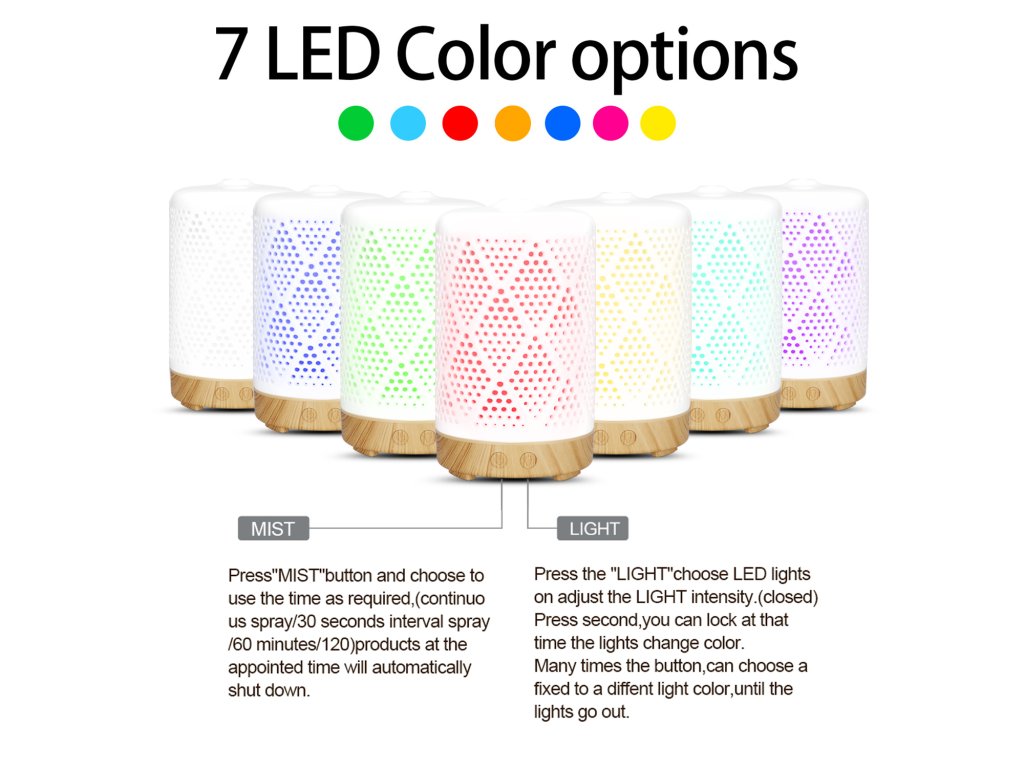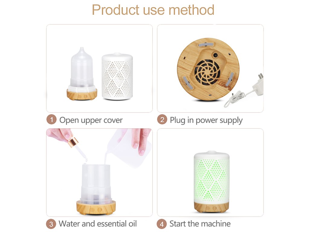 Dyfuzor wykorzystuje technologię dyfuzji ultradźwiękowej do rozpylania w pomieszczeniu olejków eterycznych. Inteligentny dyfuzor działa poprzez wytwarzanie ultradźwięków o częstotliwości 360°, które natychmiast rozpylają cząsteczki wody i olejku w powietrzu. W rezultacie jest to znacznie zdrowsza alternatywa niż starsze modele dyfuzorów ciepła, które mogą uszkadzać olejki eteryczne podczas procesu rozprowadzania ciepła. Jest praktyczny i wyłącza się automatycznie, gdy zbiornik jest pusty.