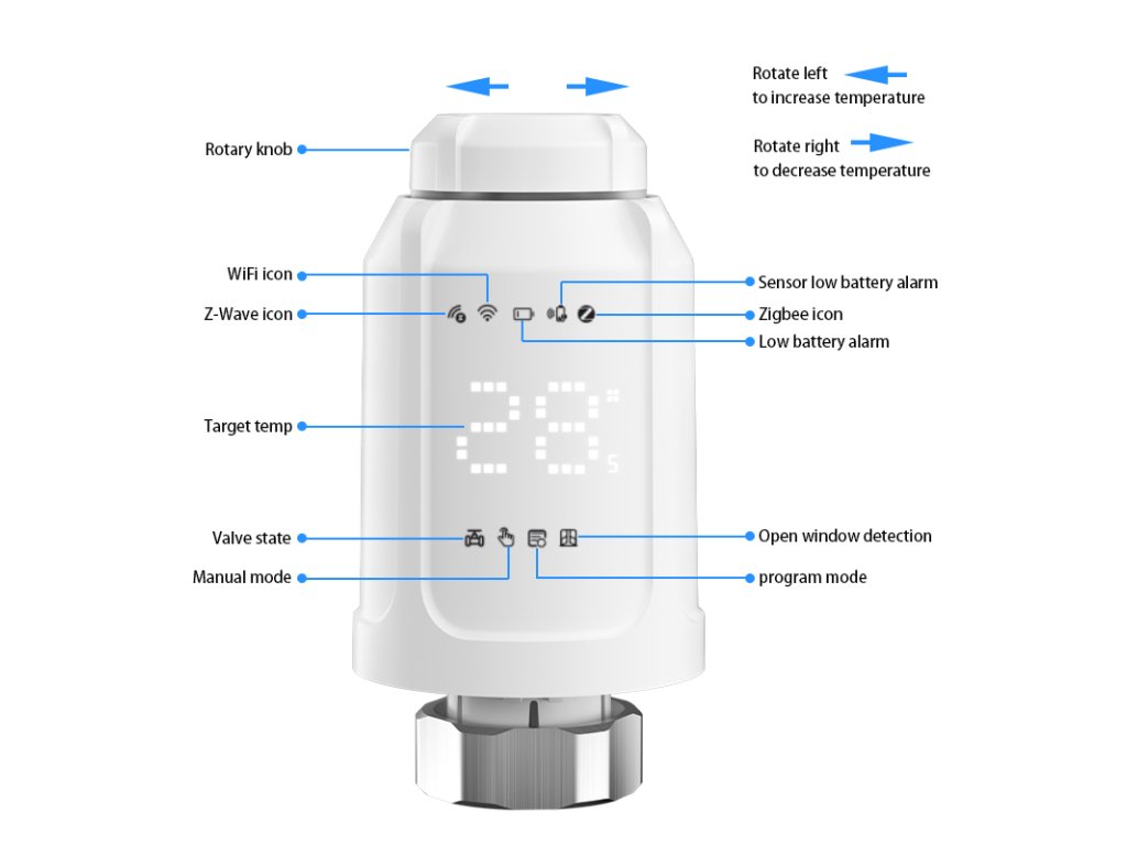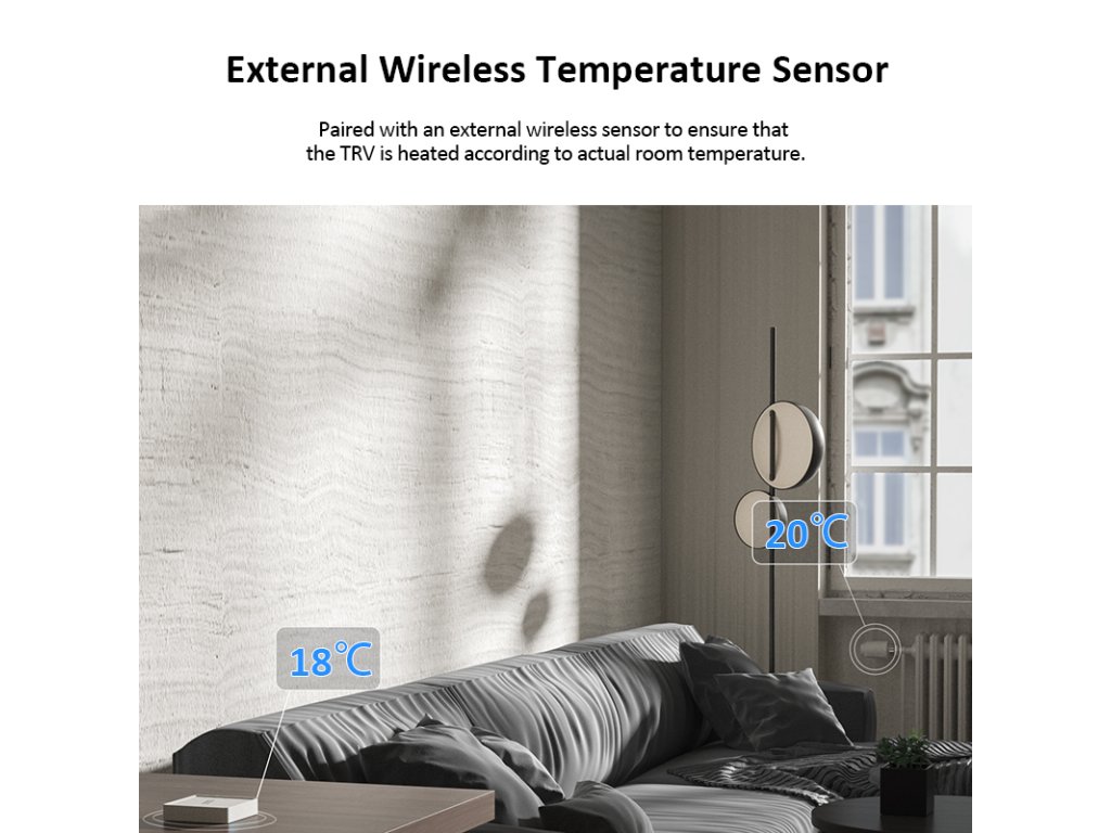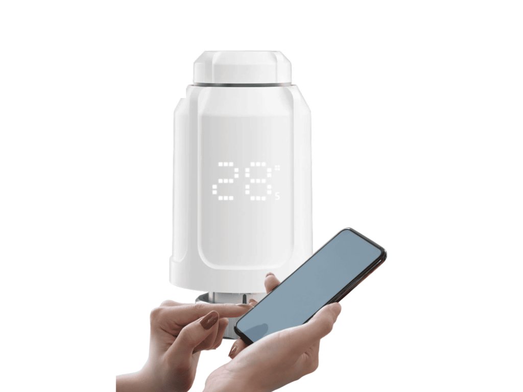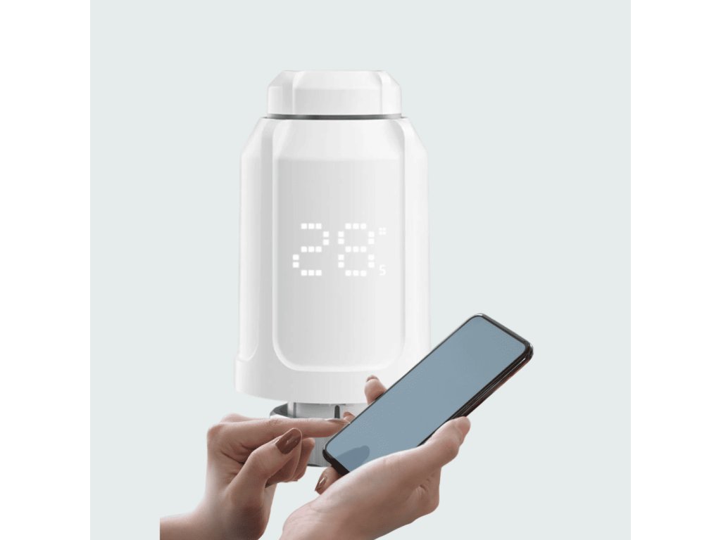 Inteligentna głowica termostatyczna steruje ogrzewaniem domu i optymalizuje zużycie energii. Została stworzona do współpracy ze smartfonami. W dowolnym miejscu i czasie możesz sprawdzić i regulować ogrzewanie domu za pomocą smartfona w zakresie temperatur od 5 do 35°C z dokładnością do 0,5°C.