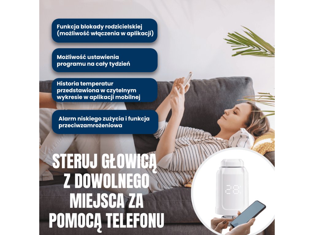 src='https://cdn.myshoptet.com/usr/www.blueroad.cz/user/documents/upload/thermostatic head controlled by mobile phone.png' alt="thermostatic head controlled by mobile phone" width="270" caption="false" style="float: left; margin-right: 10px; margin-bottom: 15px; margin-top: 15px;" />Nie ma wątpliwości, że zaprogramowane i inteligentne ogrzewanie pomieszczeń pozwoli Ci zaoszczędzić sporo pieniędzy w dłuższej perspektywie. Czy spędzasz dużo czasu na spotkaniach i przebywasz w biurze nieregularnie i raczej rzadko? Inteligentna głowica termostatyczna pozwoli Ci zdalnie sterować ogrzewaniem. Już nie zdarzy się, że zapomnisz obniżyć temperaturę wychodząc, a po powrocie nie będziesz musiał czekać, aż mieszkanie się nagrzeje. Temperaturę możesz wygodnie ustawić zdalnie z dowolnego miejsca. Możesz również użyć głowic termostatycznych, aby kontrolować temperaturę w mieszkaniu, gdy idziesz do pracy lub wyjeżdżasz na wakacje. Zintegrowana blokada rodzicielska gwarantuje, że w pomieszczeniu nie będzie zimno ani nie przegrzeje się z powodu obecności małych dzieci. To ryzyko w przypadku klasycznych głowic, zwłaszcza gdy małe dzieci lubią obracać głową w przód i w tył podczas zabawy.