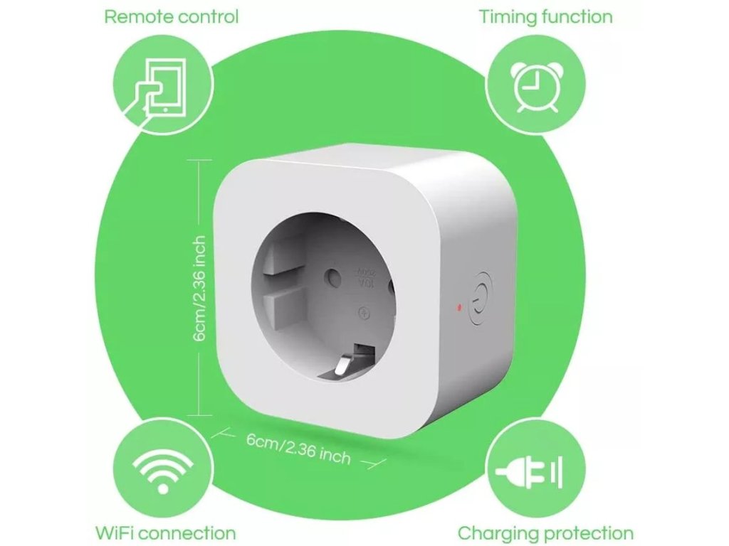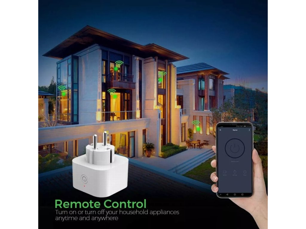 Inteligentne gniazdko WiFi, 16 A, sterowanie za pomocą aplikacji Smart Life lub Tuya Smart, kompatybilne z Asystentem Google i Amazon Alexa, mierzy zużycie energii, Android/iOS, białe