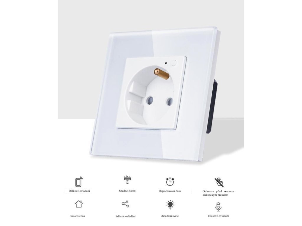 Inteligentne gniazdko ścienne, Zigbee, aplikacja mobilna Tuya Smart/Smart Life, 16 A, pomiar zużycia energii, zgodność z Google Assistant i Amazon Alexa, biały design.