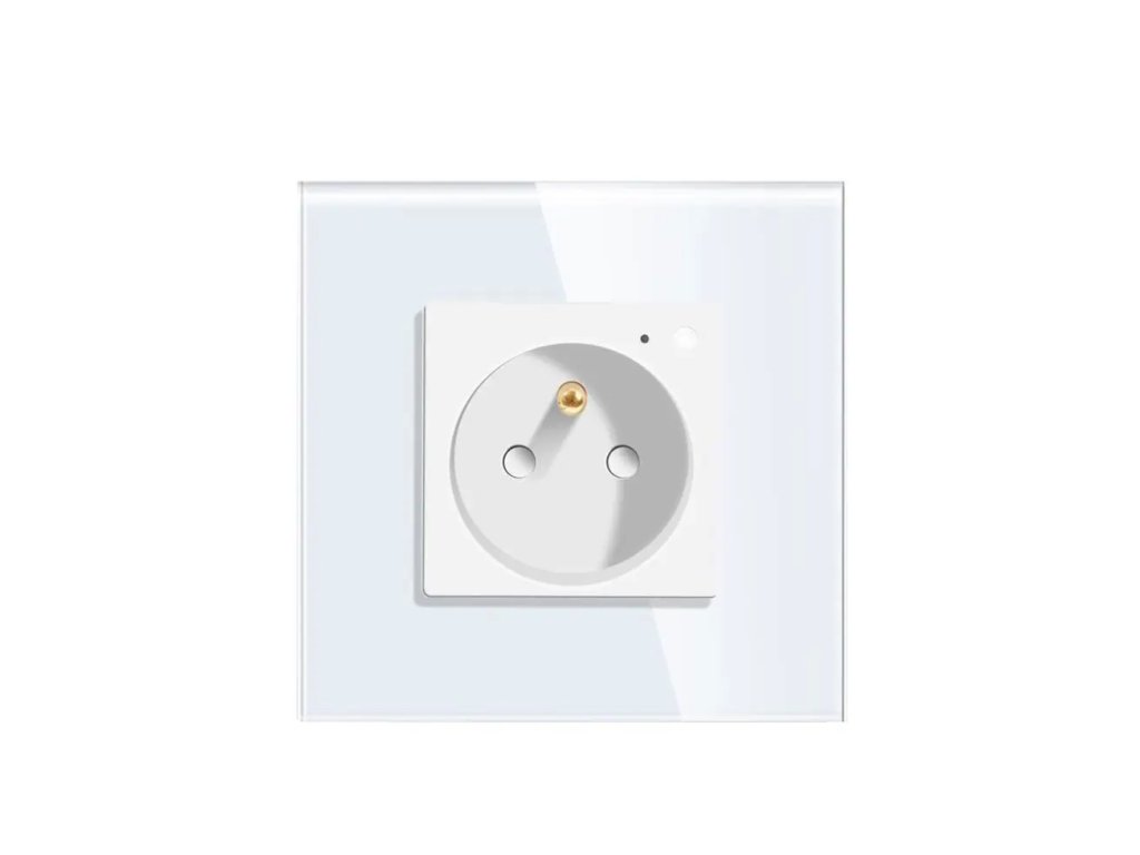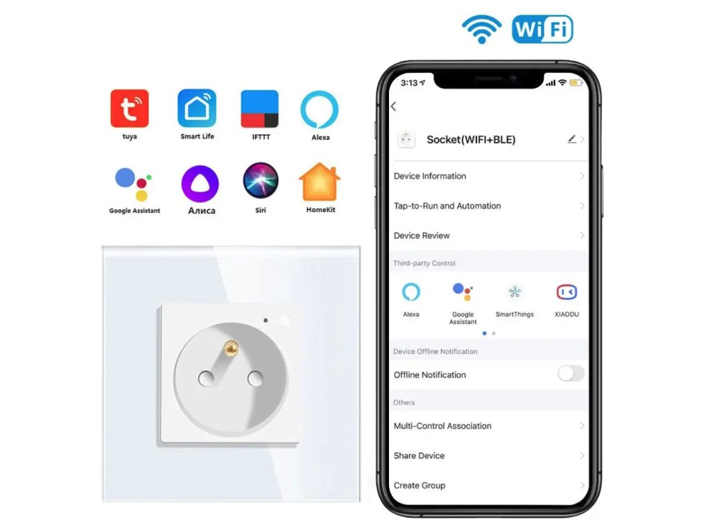 Inteligentne gniazdko WiFi, 16 A, mierzy zużycie energii, aplikacja mobilna Tuya Smart / Smart Life, kompatybilne z Asystentem Google i Amazon Alexa, aplikacja na Androida/iOS, biały design.