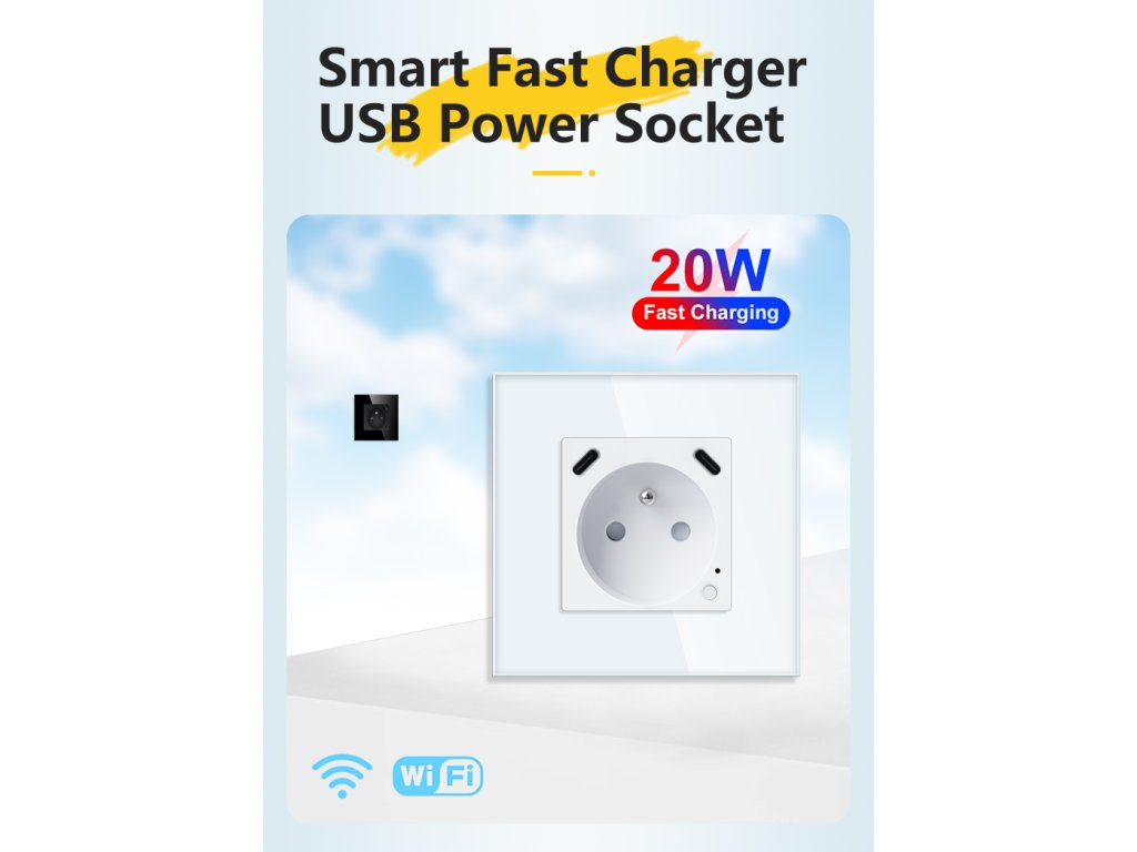 - Inteligentne gniazdo WiFi z portami USB-A i USB-C