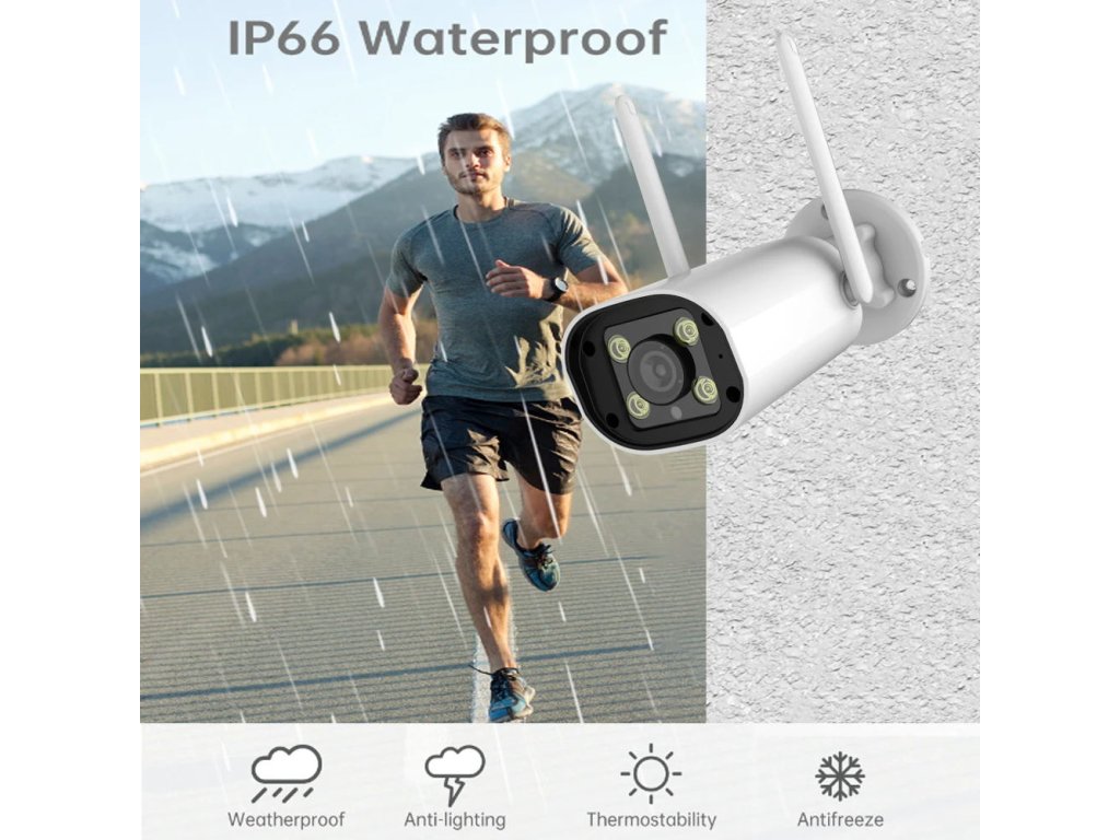 - Kompletna ochrona: Dzięki certyfikatowi IP66 kamera jest wodoodporna i pyłoszczelna, dzięki czemu idealnie nadaje się do użytku na zewnątrz w każdych warunkach pogodowych, od -20°C do +55°C.