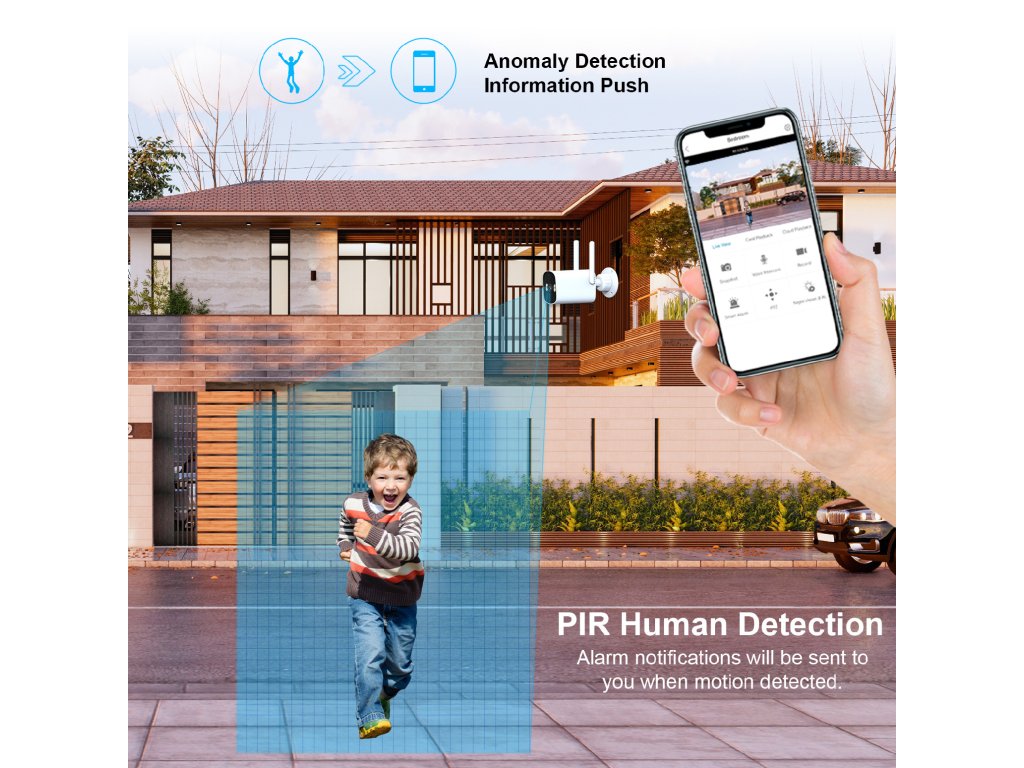 - Detekcja ruchu: Dzięki inteligentnej kamerze zewnętrznej Wi-Fi BOT LNA02 nigdy nie przegapisz żadnego ruchu. Technologia detekcji ruchu natychmiast wykrywa każdy podejrzany ruch i powiadamia Cię za pośrednictwem aplikacji mobilnej.