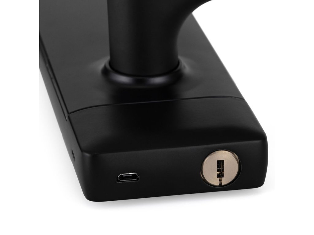 Wysokiej jakości bateria może wytrzymać do 10 miesięcy w klamce przy 20 odblokowywaniach dziennie. Zawsze masz podgląd stanu naładowania baterii w aplikacji. Jeśli baterie naprawdę się wyczerpią, możesz otworzyć drzwi klasycznym kluczem (jeśli masz zamontowaną wkładkę bębenkową) lub po prostu podłączyć klamkę przez UBS, np. do powerbanku lub innego źródła zasilania i w ten sposób otworzyć drzwi.