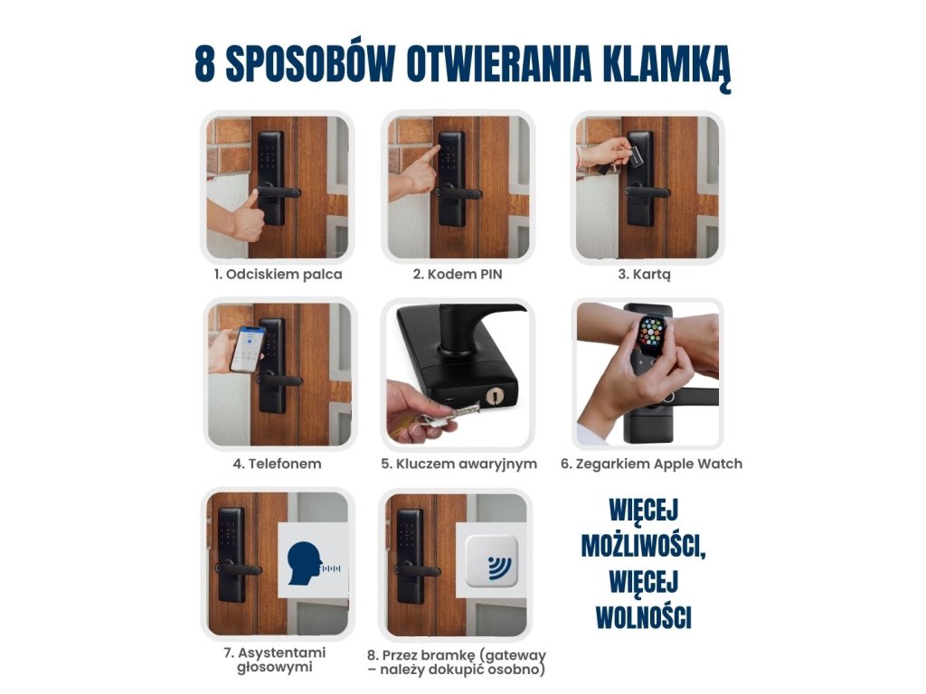✔ Do 200 odcisków palców, 200 kart inteligentnych i 150 indywidualnych haseł