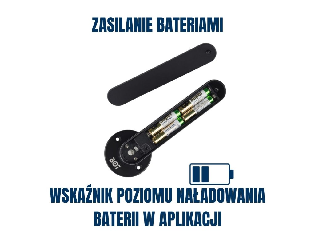 Wysokiej jakości baterie wystarczają nawet na 10 miesięcy przy 20 otwarciach dziennie. W aplikacji masz podgląd poziomu naładowania. Jeśli mimo to baterie się rozładują, możesz otworzyć drzwi klasycznym kluczem (jeśli masz zamontowaną wkładkę cylindryczną) albo podłączyć klamkę przez USB do powerbanku lub innego źródła zasilania i otworzyć drzwi.