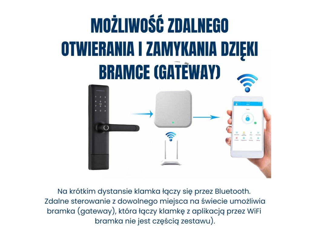 Klamka standardowo komunikuje się przez Bluetooth. Aby sterować nią zdalnie z dowolnego miejsca lub przez asystentów głosowych, takich jak Google Assistant czy Alexa, należy podłączyć ją do internetu. Służy do tego gateway, który trzeba dokupić.