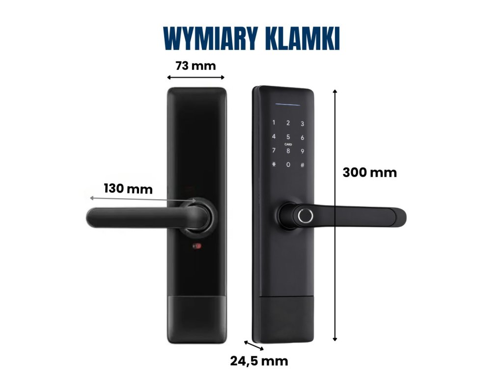 - ✔ Wymiary klamki: szerokość 73 mm, wysokość 300 mm, grubość 24,5 mm, długość uchwytu 130 mm