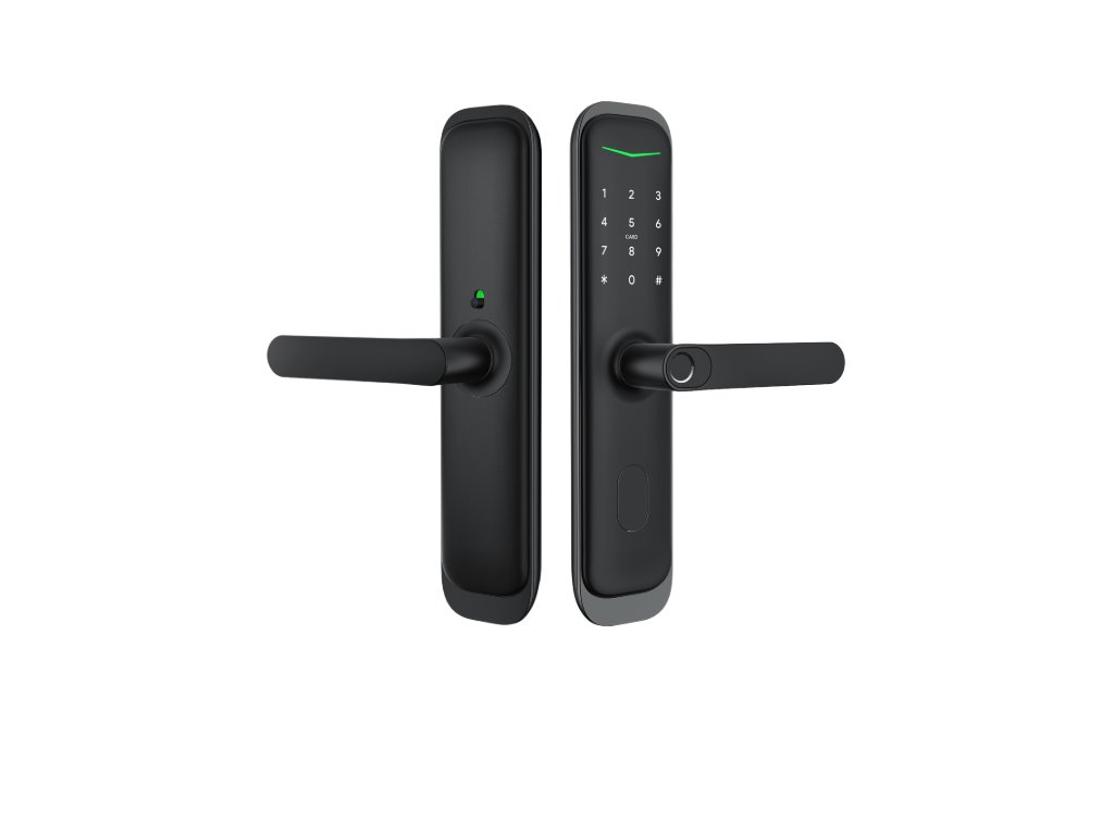 Inteligentny uchwyt Bluetooth/WiFi, sterowanie za pomocą aplikacji mobilnej TTLock, 5 opcji odblokowania (klucz, odcisk palca, kod numeryczny, karta inteligentna, telefon komórkowy), funkcja automatycznej blokady, orientacja w prawo i w lewo, zasilany 4 bateriami AA, czarny.