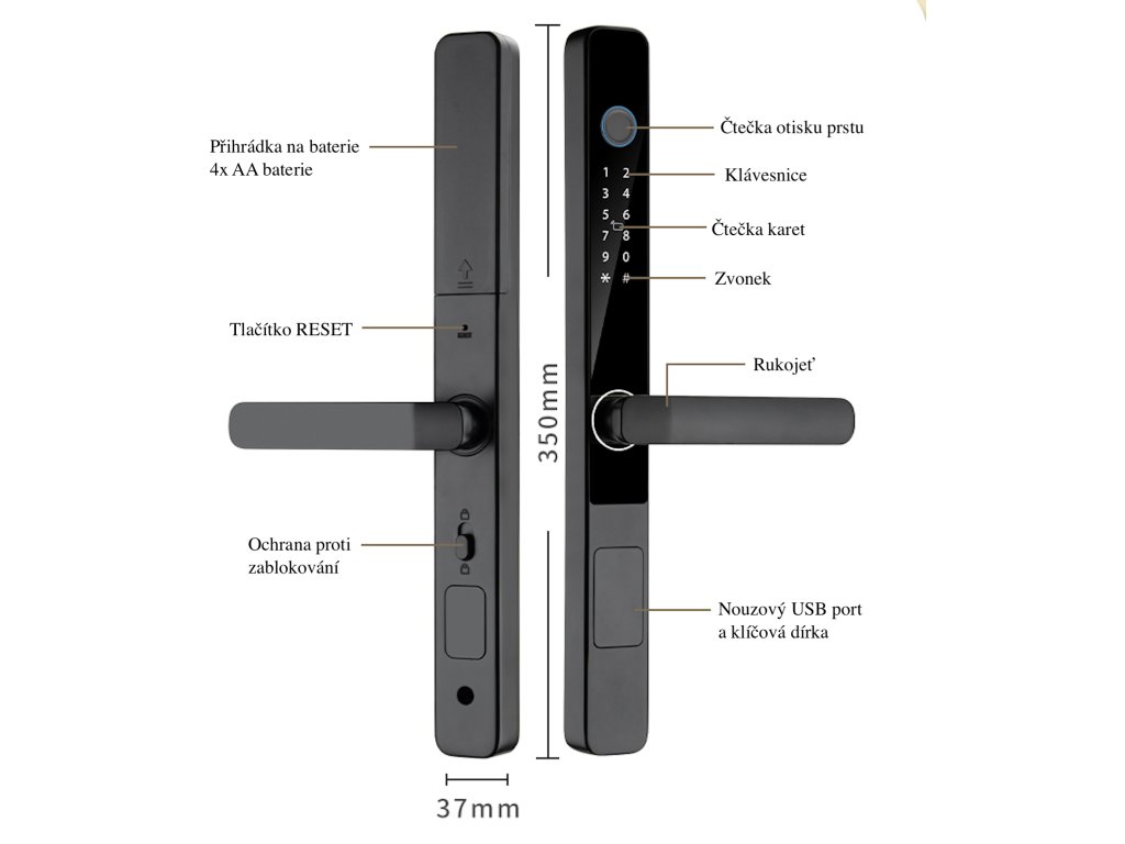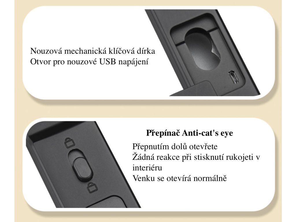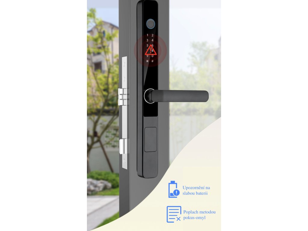 | Možnost odemykání/zamykání: | nouzový klíč, otisk prstu, PIN, karta, mobilním telefonem |