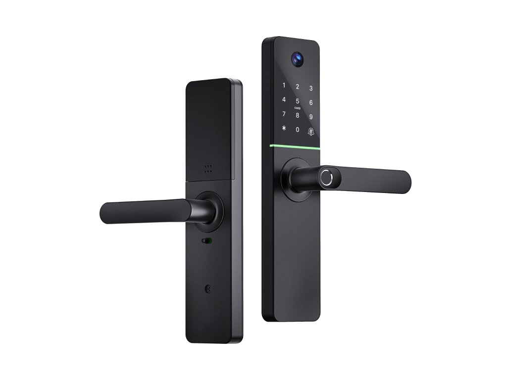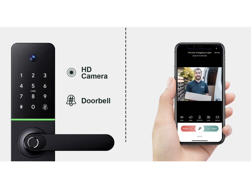 - 5 opcji odblokowania: Wybierz metodę, która najbardziej Ci odpowiada (tklucz radiacyjny, oWbudowana kamera HD: Śledź, kto nadchodzi i bezpośrednio z urządzenia mobilnego. Kamera HD zapewnia ostry obraz i zwiększa poziom bezpieczeństwa.