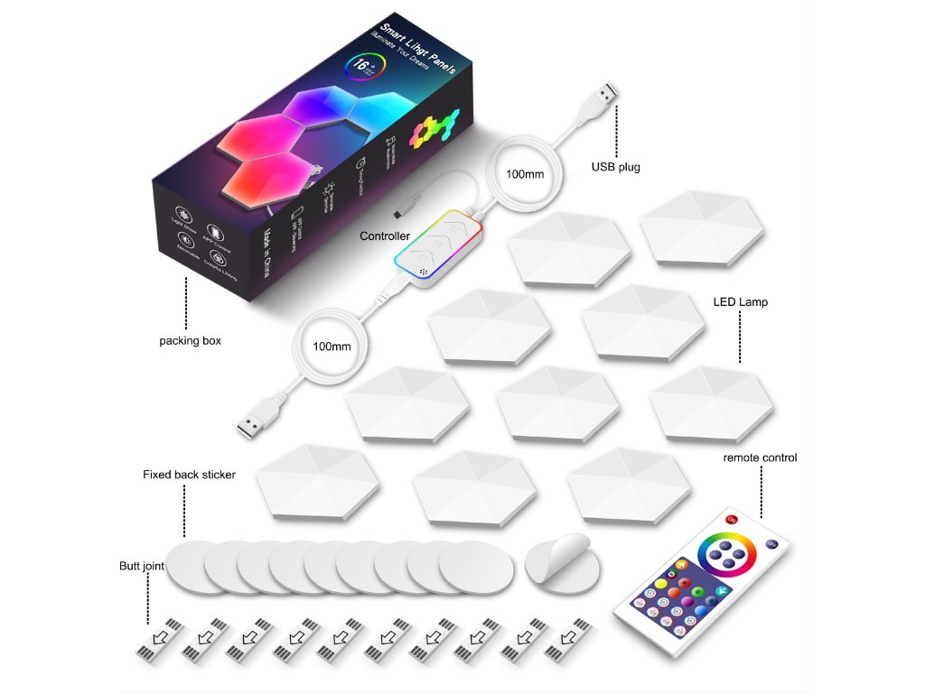 1) Elastyczna aranżacja według Twojej wyobraźni: Dzięki modułowym sześciokątom LED możesz tworzyć nieskończoną liczbę kombinacji i kształtów. Wystarczy podłączyć kolejne moduły i pozwolić swojej kreatywności działać.
