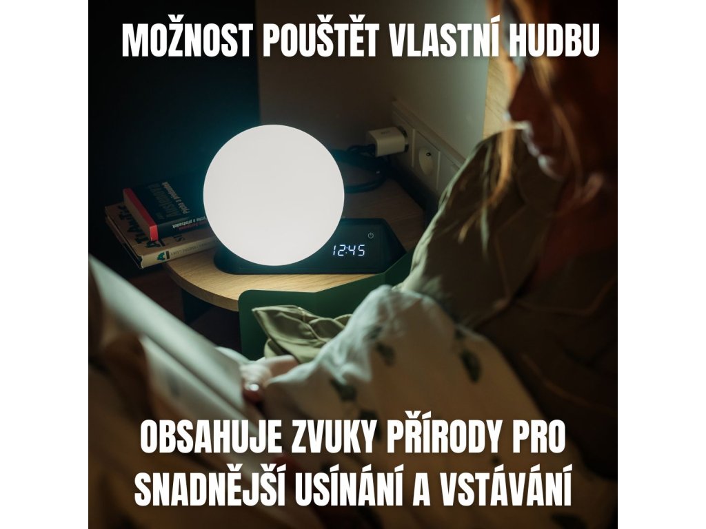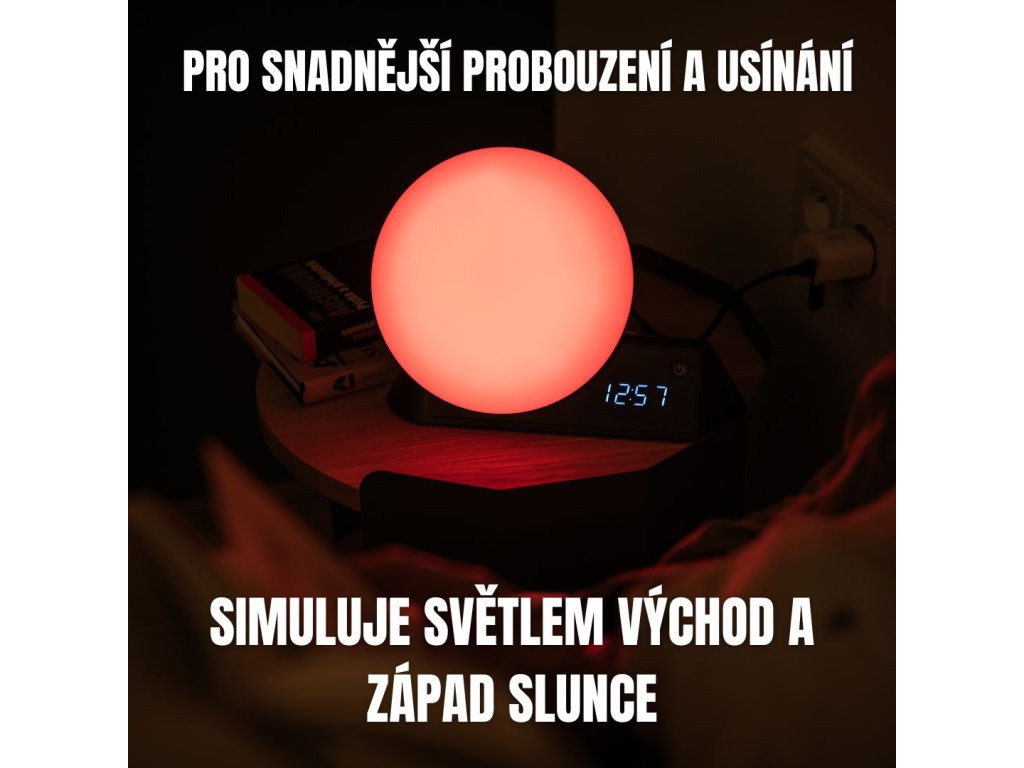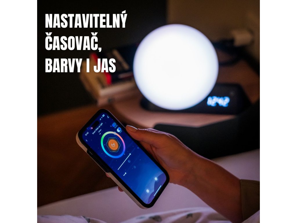 Dzięki możliwości ustawienia do 16 milionów różnych kolorów, inteligentny budzik dopasuje się do niemal każdego pomieszczenia i idealnie wpasuje się w jego wnętrze. Oprócz koloru, możesz również ustawić jasność wybranego światła, które Cię obudzi. 15 zaprogramowanych dźwięków natury lub możliwość odtwarzania własnej muzyki przez Bluetooth pomogą Ci zasnąć, spać spokojnie i budzić się łatwiej. Wszystko możesz łatwo ustawić w aplikacji. Budzikiem można również łatwo sterować za pomocą pilota.
