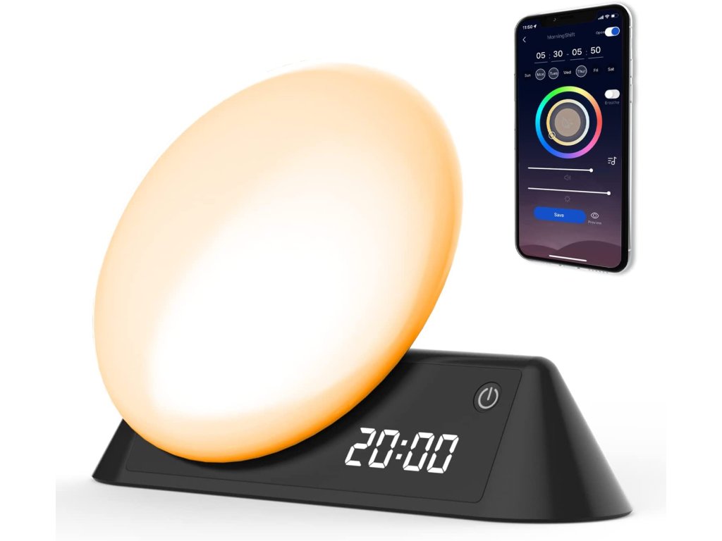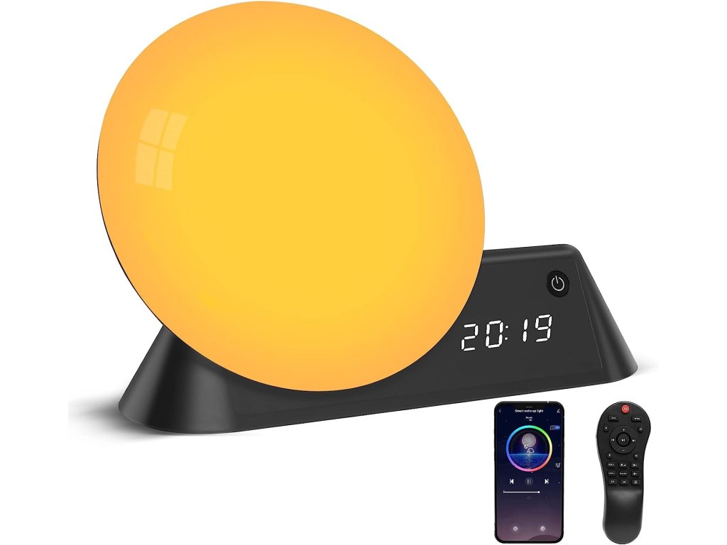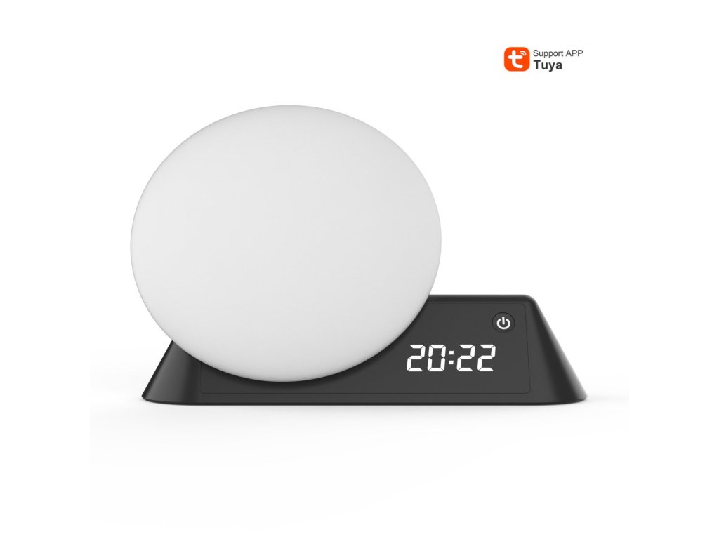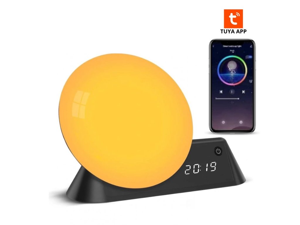 Inteligentny budzik z regulowanymi kolorami diod LED, 16 milionów kolorów, sterowanie za pomocą aplikacji mobilnej Tuya Smart / Smart Life, pilot, WiFi, Bluetooth, kompatybilny z Alexą i Google Home, regulowane nasycenie kolorów, timer uruchamiania kolorów, odtwarzanie muzyki.