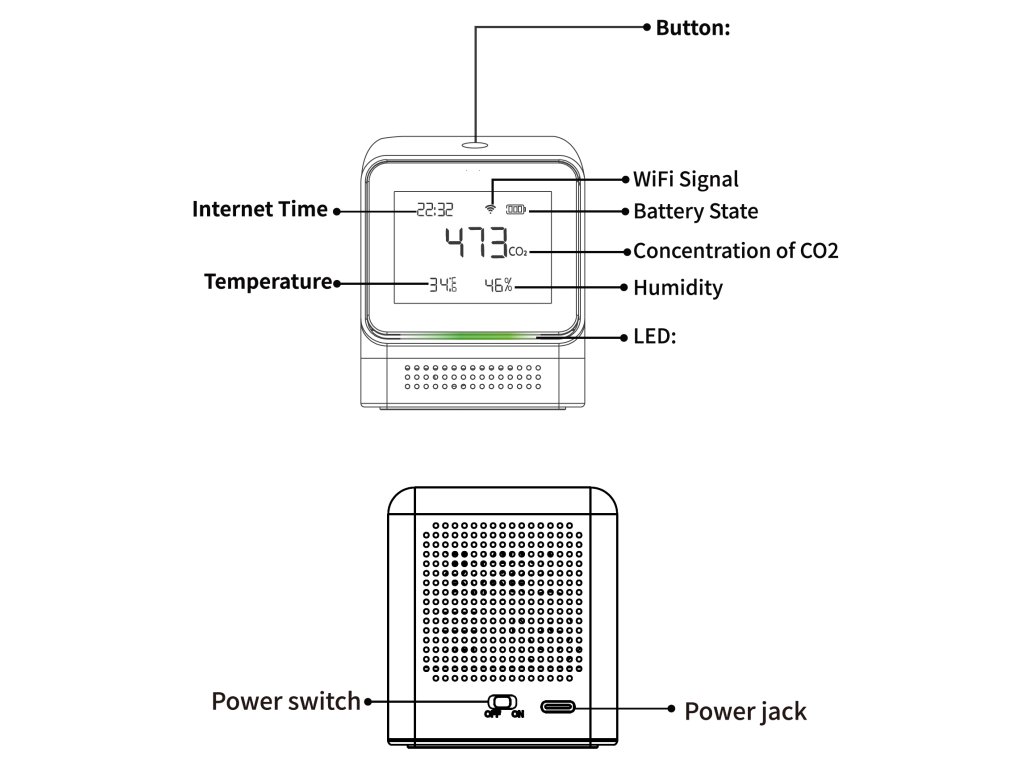 Inteligentny czujnik dwutlenku węgla BOT z WiFi CS1