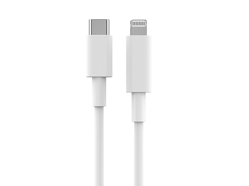 Kabel do transmisji danych i ładowania BOT, USB-C do Lightning, biały design, USB 2.0, 480 Mb/s, długość 1 m.
