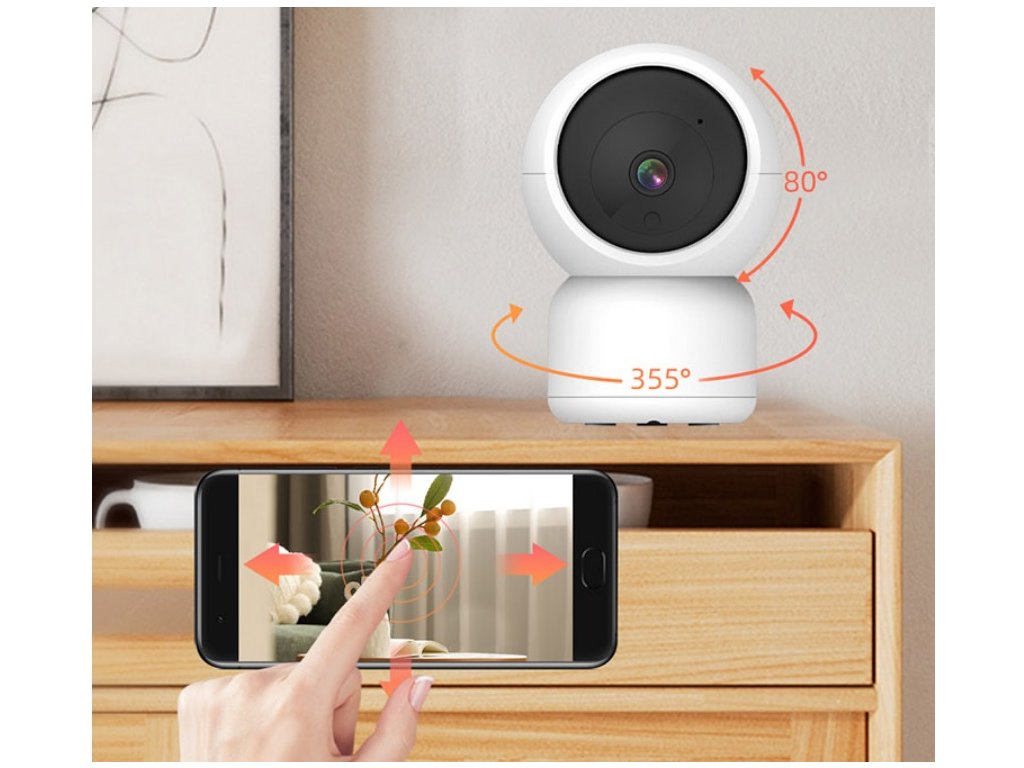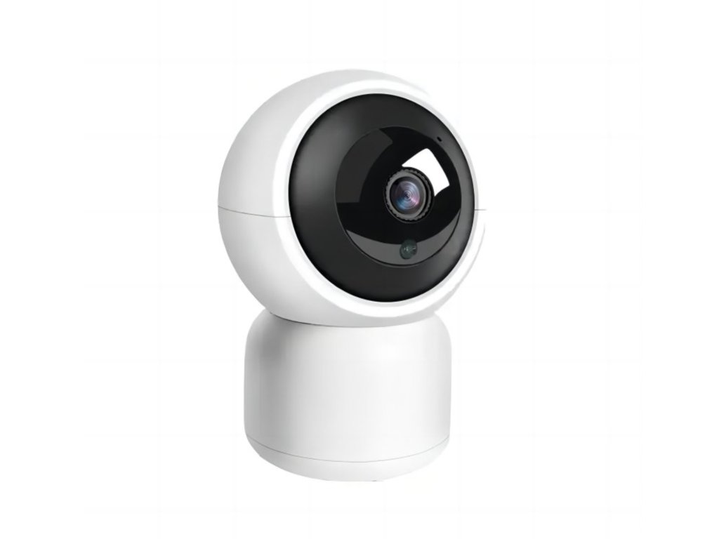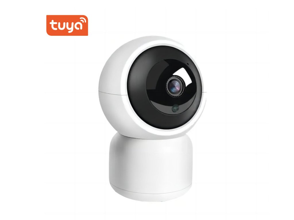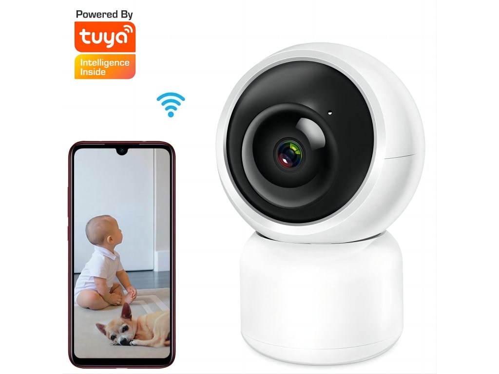 Wewnętrzna kamera WiFi, obrót kamery w poziomie 0°-355° i w pionie 0°-80°, rozdzielczość: 2560 × 1440, automatyczne przełączanie trybu dziennego i nocnego, funkcja wykrywania ruchu, obsługa dwukierunkowej komunikacji audio, kompatybilna z aplikacją mobilną Tuya Smart/Smart Life.