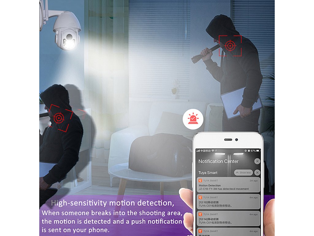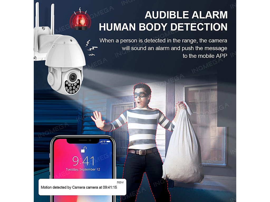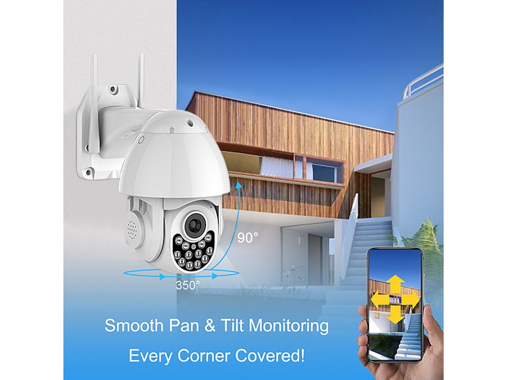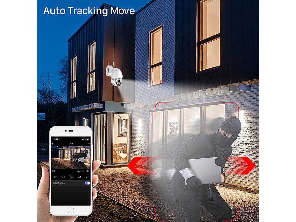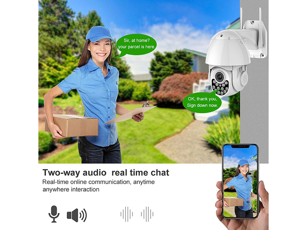 Jedną z głównych zalet kamery jest możliwość zdalnego sterowania obrotem – w poziomie w zakresie 0°-355° i w pionie w zakresie 0°-90°. Pozwala to objąć szeroki obszar i zawsze mieć podgląd na to, co się dzieje. Zintegrowana detekcja ruchu natychmiast powiadamia o podejrzanej aktywności, a dwukierunkowa komunikacja z redukcją szumów pozwala na bezpośrednią komunikację z gośćmi lub powiadomienie potencjalnych intruzów za pośrednictwem kamery.