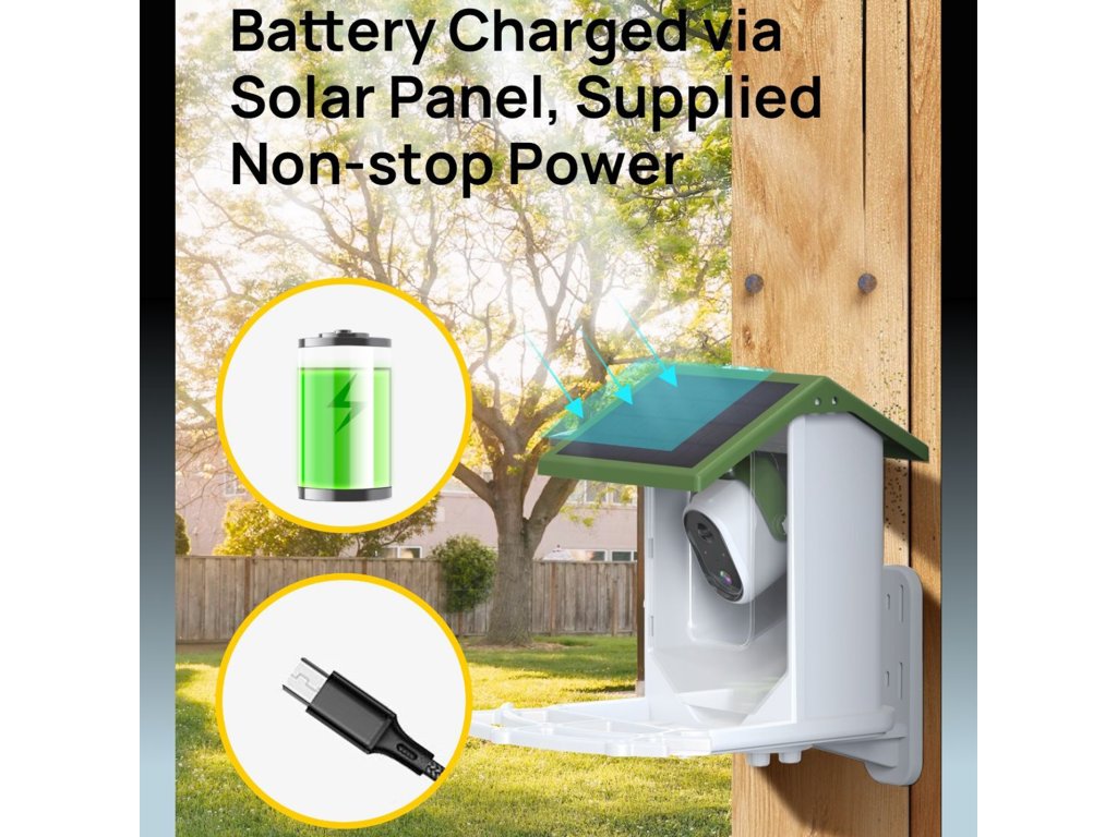 - Ekologiczny i zrównoważony: Zasilanie słoneczne i akumulatory zapewniają, że karmnik jest zawsze gotowy do użycia, bez konieczności częstego ładowania.