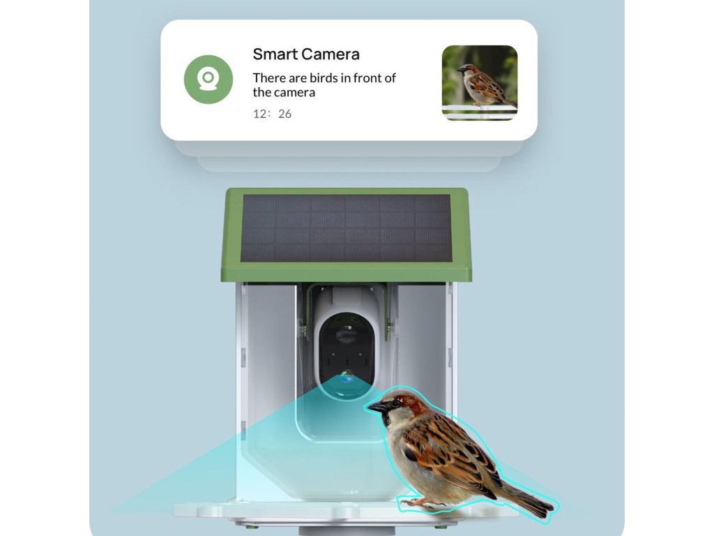 Inteligentny karmnik jest również wyposażony w inteligentną funkcję wykrywania ptaków i alarmu, która natychmiast powiadamia Cię o ich obecności, a funkcja syreny skutecznie odstrasza nieproszonych gości, takich jak wiewiórki.