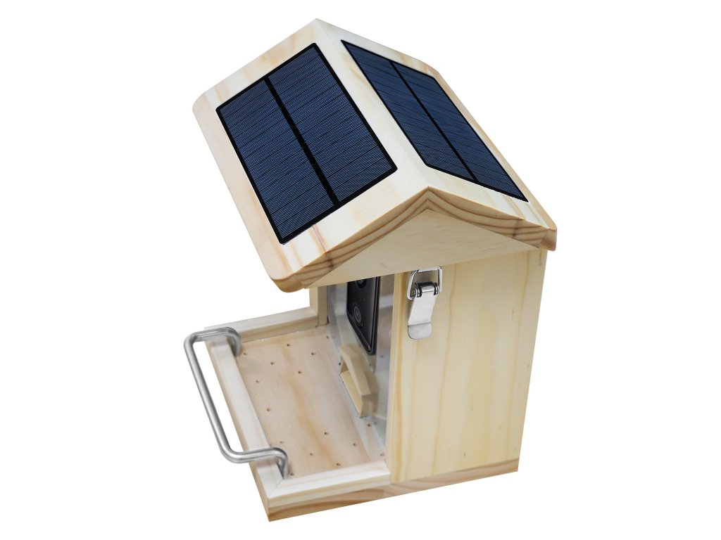 Inteligentny karmnik jest oczywiście kompatybilny z aplikacją mobilną, która umożliwia oglądanie transmisji na żywo i nagrań oraz otrzymywanie powiadomień na telefon natychmiast po wykryciu ruchu. Cała technologia jest bezprzewodowa. Karmnik jest zasilany z wbudowanego akumulatora. Panel słoneczny w dachu karmnika wydłuża czas jego ładowania. Im więcej słonecznych dni, tym dłużej wytrzyma bateria.