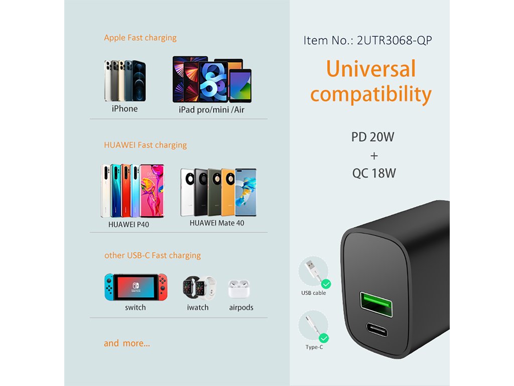 BOT Ładowarka sieciowa PD 20W + QC 18W