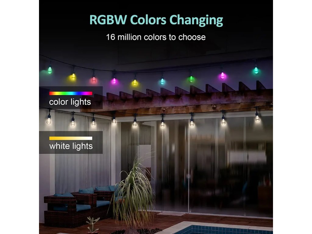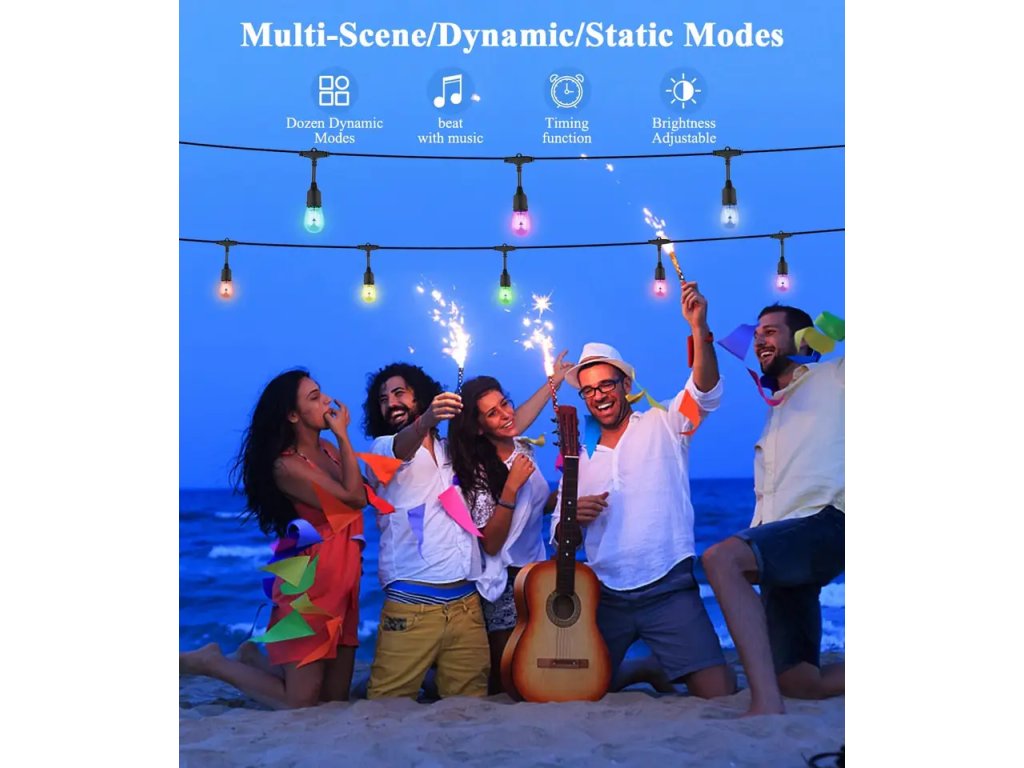 Inteligentny, zewnętrzny łańcuch imprezowy LED rozświetli każdą imprezę i stworzy przyjemną, świąteczną atmosferę. Łańcuch może być używany do oświetlenia ogrodu i spotkań ze znajomymi. Duża różnorodność ustawień (reakcja na muzykę, timer, wybór koloru, regulacja jasności itp.) sprawia, że jest to idealny produkt do dekoracji ślubnych.