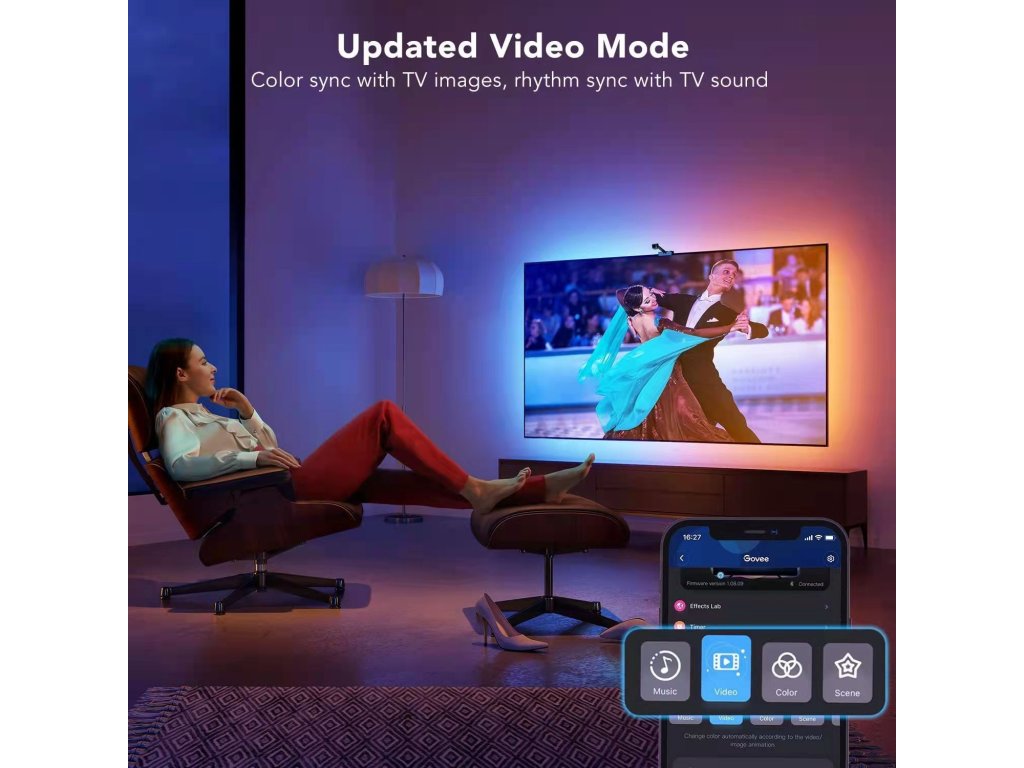 - Tryby i synchronizacja oświetlenia z muzyką