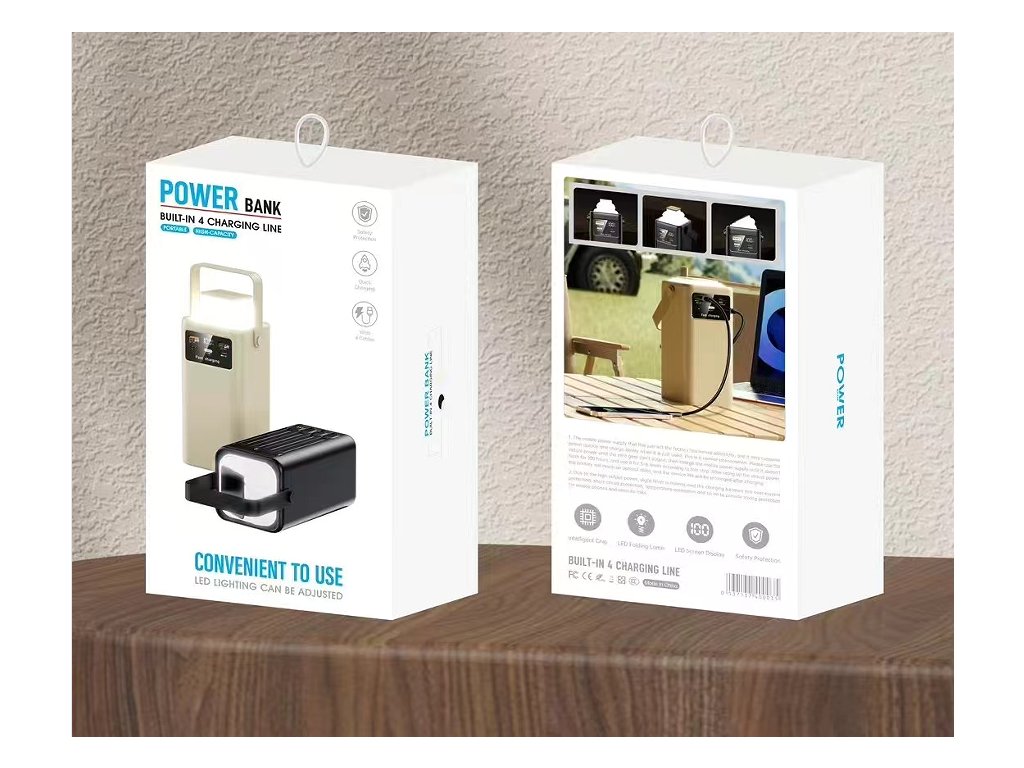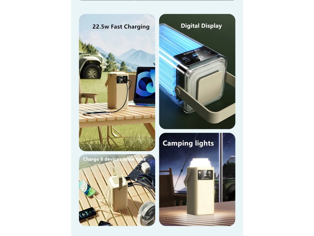 Power bank samolotowy, odpowiedni do ładowania telefonów komórkowych, tabletów i laptopów, pojemność 20 000 mAh, 22,5 W, wyjścia USB i USB-C, wyświetlacz LED, zabezpieczenie przed nadmiernym rozładowaniem, zabezpieczenie przed zwarciem, przeładowaniem i wahaniami niskiego napięcia, kolor biały lub czarny.