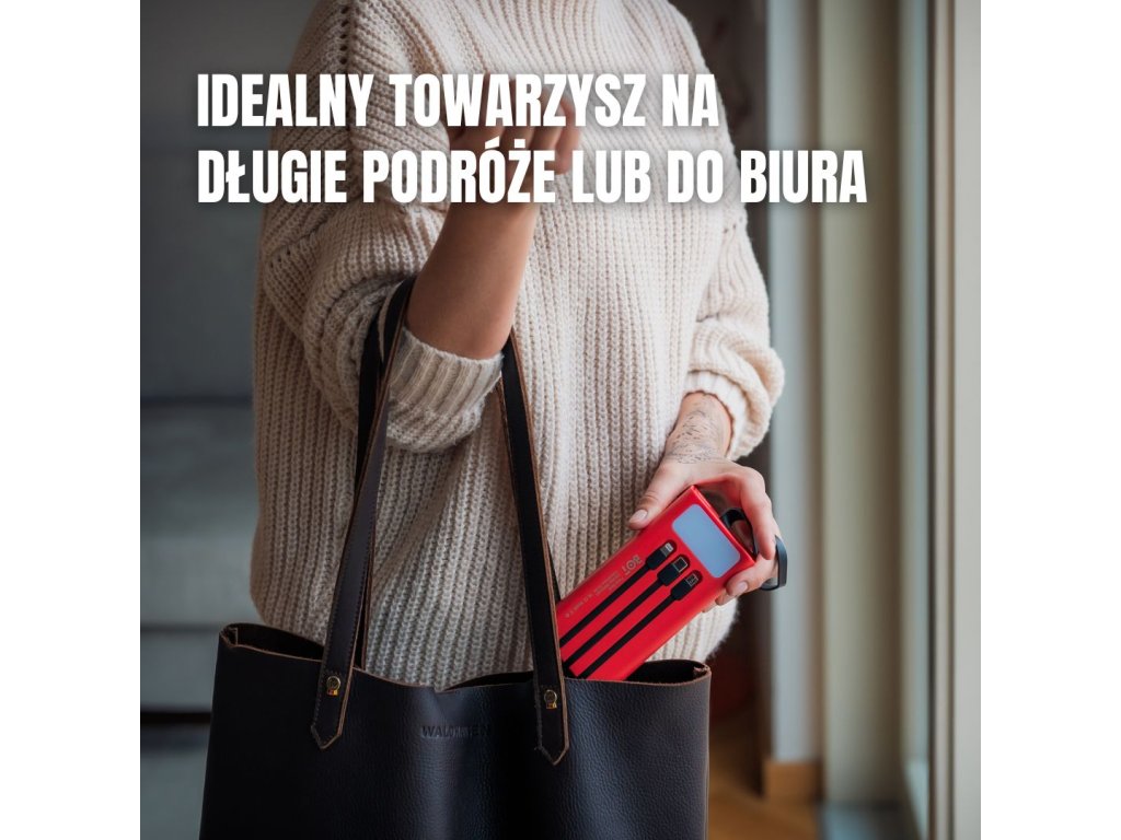 Pojemność 50 000 mAh, zintegrowane kable, ładowanie do 4 urządzeń jednocześnie, latarka, wysokiej jakości akumulatory litowo-polimerowe, certyfikaty: FCC, CE, Rohs, obsługa szybkiego ładowania USB 2.1 A, wyświetlacz LED, zabezpieczenie przed nadmiernym rozładowaniem, zabezpieczenie przed zwarciem, zabezpieczenie przed przeładowaniem i niskimi wahaniami napięcia, kolory: czarny, czerwony, zielony