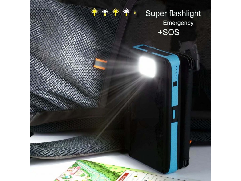 Samolotowy powerbank solarny o pojemności 20 000 mAh z 6 panelami słonecznymi, latarką, bezprzewodowym ładowaniem Qi, wysokiej jakości bateriami polimerowymi klasy A oraz certyfikatami FCC, CE, RoHS, UN38, MSD