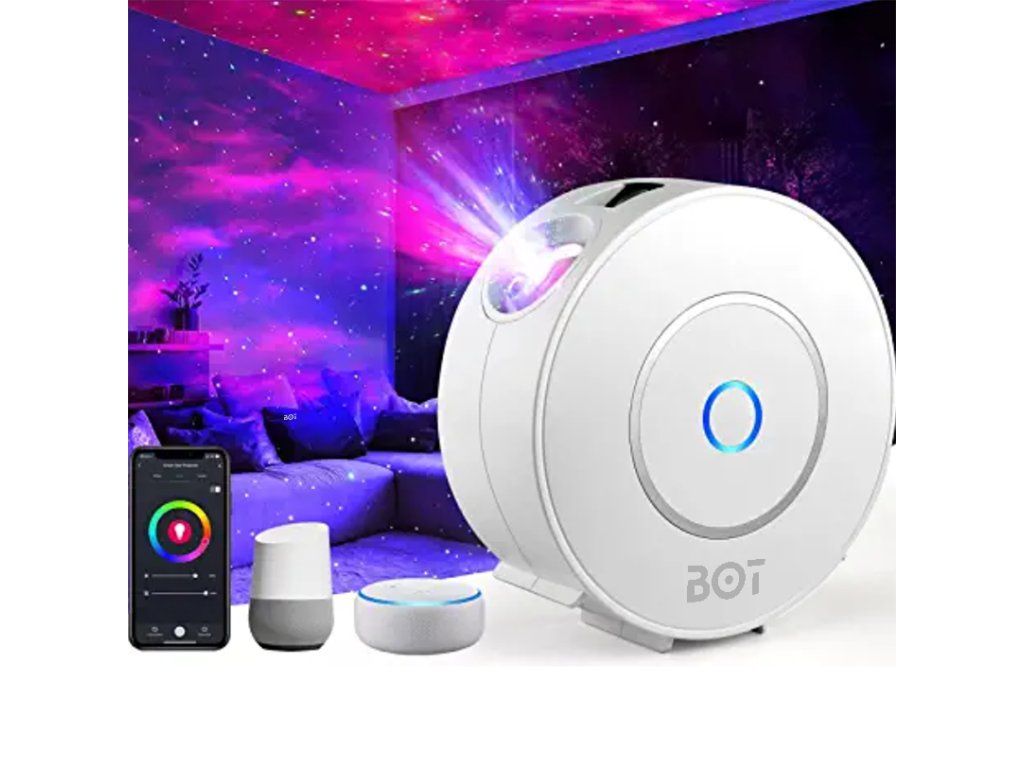 Projektor nocnego nieba z gwiazdami i mgławicą do pokoju dziecięcego, na imprezę, a może do kina domowego. Sterowanie za pomocą aplikacji mobilnej Smart Life, kompatybilnej z Alexą, Google Home i Apple HomeKit.