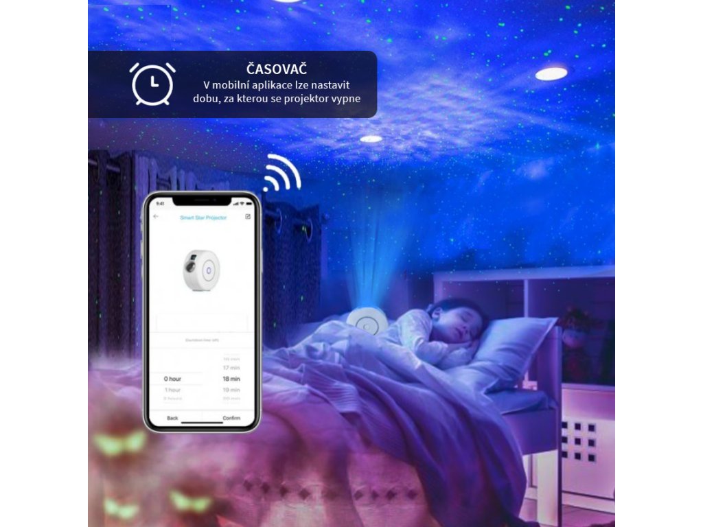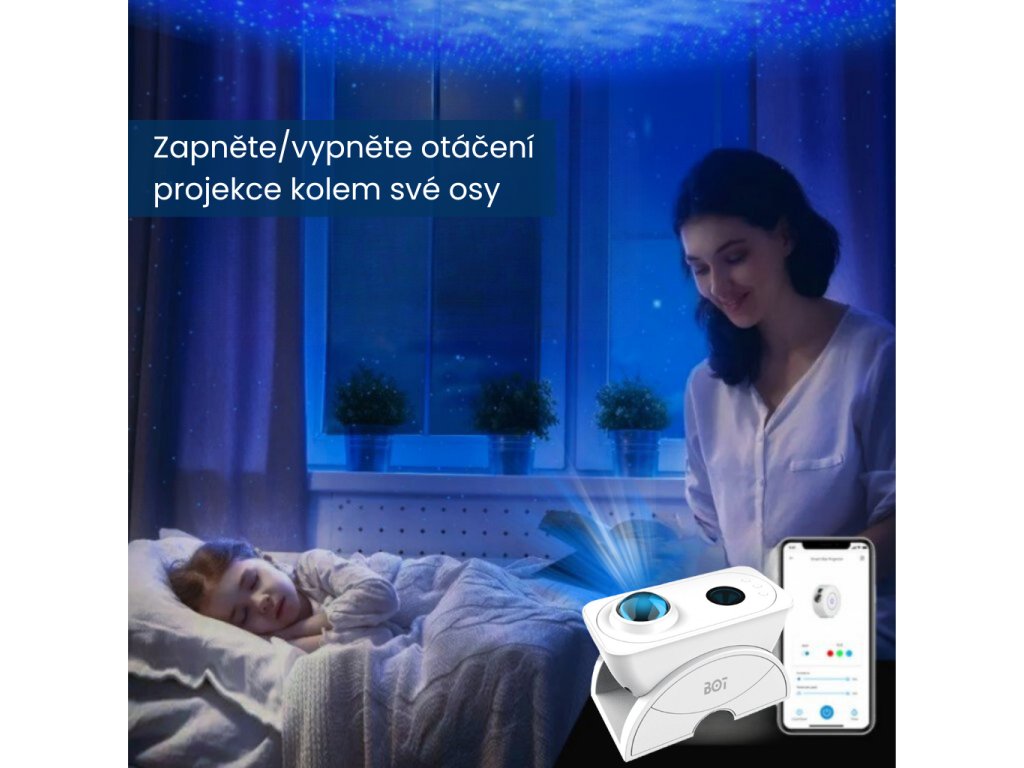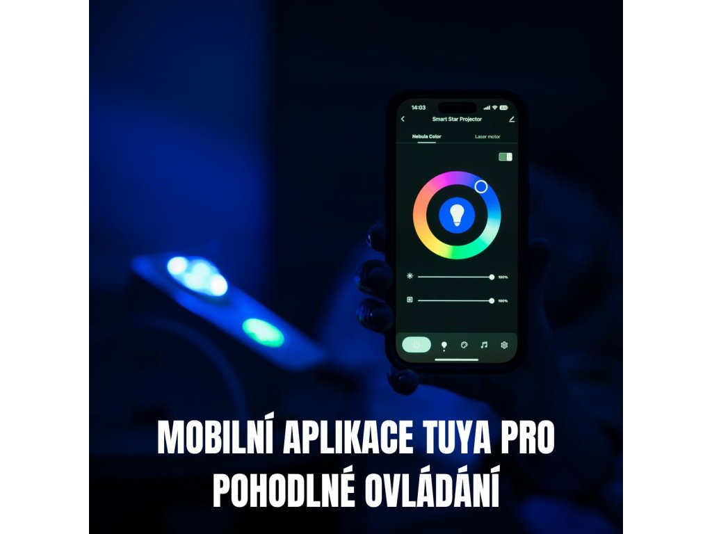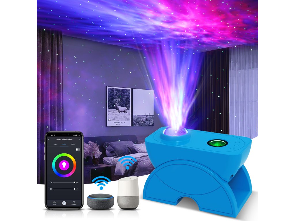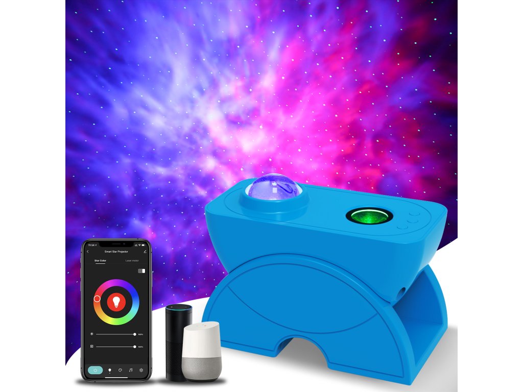 Projektor nocnego nieba z gwiazdami i mgławicą do pokoju dziecięcego, na imprezę, a może do kina domowego. Sterowanie za pomocą aplikacji mobilnej Smart Life, kompatybilnej z Alexą, Google Home i Apple HomeKit.
